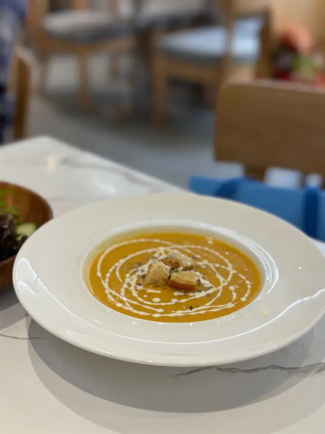 早前在堅尼地城嘅呢間小店和友人吃午餐,發現原來水準很高,所以要寫番食評贊下👍當日點咗個是日餐湯,係南瓜湯,南瓜和cream比例合適,味道濃郁。主菜點了煙熏安格斯肉眼,我叫咗medium,煎得剛剛好,沒有overcook,保持肉質鮮嫩,以呢個價錢,比高級餐廳還要做得好!除了叫咗杯凍檸茶,我地另外叫咗個雪糕Brownie,都係好好味。