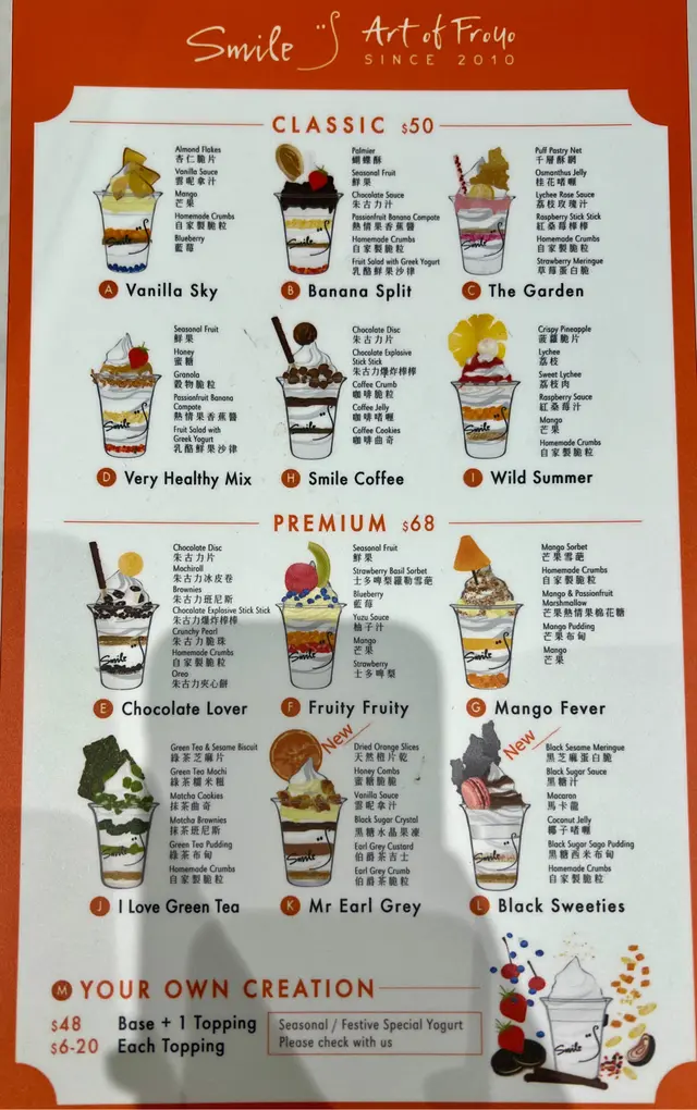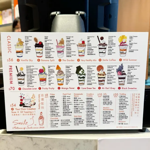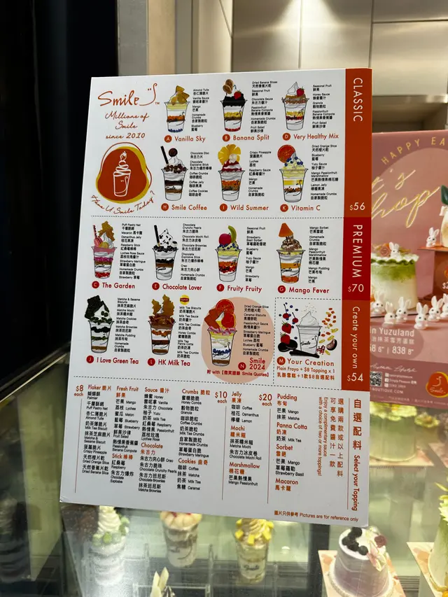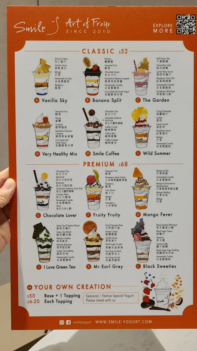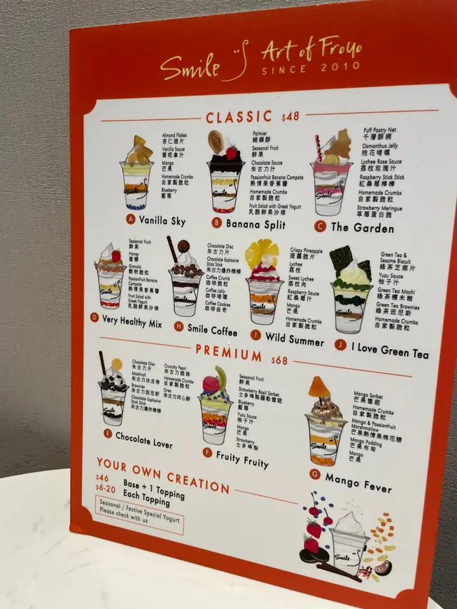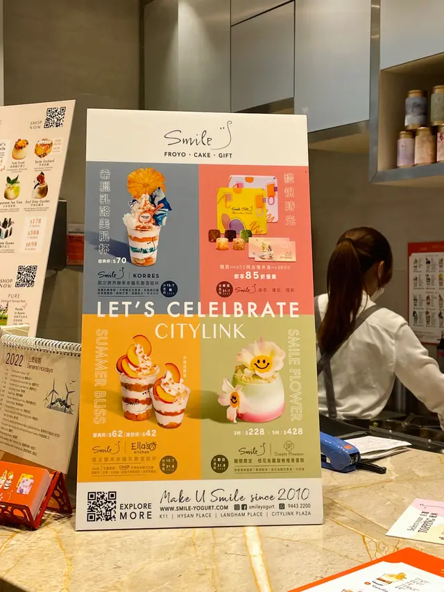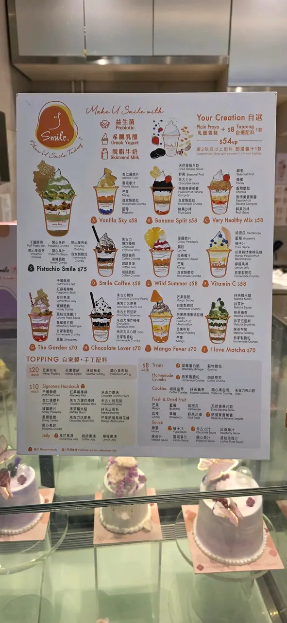 Smile Yogurt & Dessert Bar (铜锣湾) 网址: https://s.openrice.com/QrLS0AVW800 地址: 香港銅鑼灣軒尼詩道500號希慎廣場5樓511B號舖 电话: +852 28118321