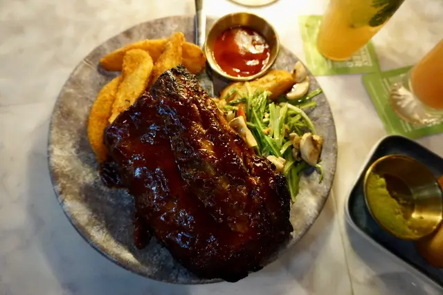 📍 So Bar (尖沙咀)💥BBQ汁燒豬肋骨份量比想像中大份 仲配埋薯菜豬肋骨八至九件肉質好嫩滑好容易拆到啲肉出嚟而且配埋BBQ 醬味道啱啱好🫶🏻💥雞串燒拼拼盤有三款串燒 有雞皮同埋雞肉串每款各兩串有分三層辣度食落好過癮!🤤🤤💥炸饅頭配咖央醬饅頭新鮮炸起外脆內軟咖央醬同饅頭都幾夾!😻💥Peachy sex 🍑賣相好靚飲落甜甜地夾雜左好香嘅桃香味😆💥Lemon tree🍋飲落去聞到好清新嘅檸檬同柑橘味仲帶點伯爵茶香飲落好清爽解渴🤤So Bar (尖沙咀)尖沙咀加連威老道10號加威中心地舖…查看更多