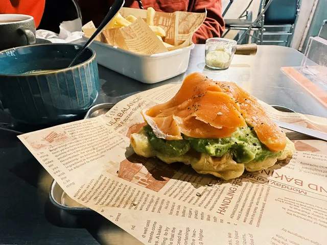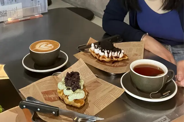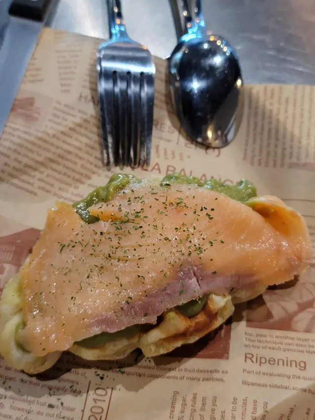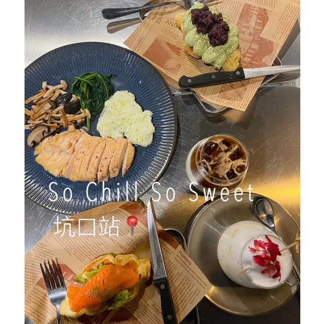 坑口村的小店 地方不大 環境清靜 裝修有格調很適合放假 chill 一 chill 主打輕食 夜晚4點後會有糖水 營業至12點 今次主要試試牛角包窩夫 Croffle點了一鹹一甜的試試 平日過來會有Weekday tea set •煙三文魚牛油果醬牛角包窩夫 $52牛角包烤得香脆不油膩 ,加上牛油果醬及柔軟的煙三文魚,口感豐富 好食 😋• 芒果忌廉牛角包窩夫       $45甜食~ 牛角包香脆,忌廉夠creamy,配上粒粒芒果,好食到想encore😋😋…查看更多