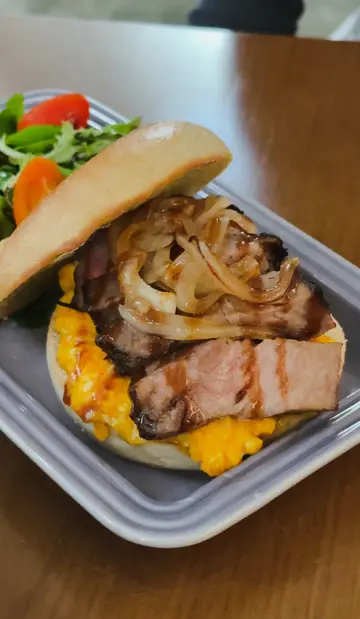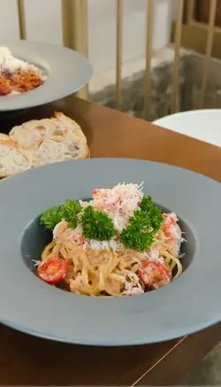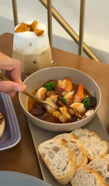 Cafe楼高两层,地下以宝蓝色、水泥色为主,楼上则以全白色为主,座位不算多,但环境舒适。有沙律、黑麦包、意粉、咖啡、特调饮品等,还有设生酮食物,例如可以加钱将黑麦包转换成生酮面包或低碳比高包。❤️ **雪山芝士肉酱意粉 $88** 奶香味与肉酱完美融合。**明太子忌廉汁蟹肉意粉 $128** 明太子的咸香与蟹肉的鲜甜交织,忌廉酱淋上后更添风味,口感滑顺。❤️ **黑毛猪叉烧滑蛋Bagel $128** 叉烧肥瘦均称,肉汁丰富,伴有洋葱,酱汁浓味配上烟靭bagel,层次丰富。**开心果巴斯克芝士蛋糕 $78** 香浓的芝士蛋糕加上开心果,口感滑顺。**焦糖脆脆Latte $58** 醇厚咖啡与焦糖的搭配,香气四溢。**香橙咖啡 $48** 清新橙香令咖啡更添层次,提神又舒服。整体食物和饮品都好好饮❤️…查看更多