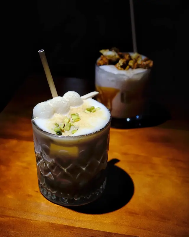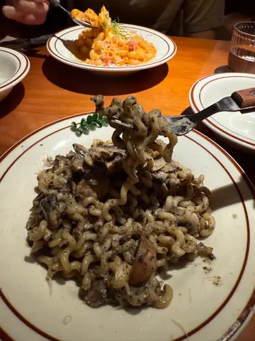 假日约了友人食Lunch叹下啡,想起Sofi,之前都想去但系就唔到时间,趁今日得闲去下,因为算系早去,去到即有位。餐厅有两层,下层面积比较细座位比较少,似系叹啡多,上层就面积较大,楼底矮,座位较多用餐之地,以木系为主调,暖色的灯光感觉Relax。假日冇Lunch,同时又冇左想食的意粉..只好拣其他。泡泡黑咖啡,$40,以柠檬干点缀,卖相有著清新之感,入口顺滑清爽,咖啡味醇厚少许苦涩,配合绵密的奶泡,微微的奶香,增添了层次感。焦糖脆脆牛乳,$48,友人的。开心果白玉燕麦奶,$57,友人的。自家制苏菲炸鸡翼,$58,口感香脆惹味,鸡肉滑又多汁。泡菜芝士卡邦尼烟斗粉,$138,烟斗粉口感烟靭有嚼劲,有泡菜味但唔算好浓,芝士唔算好多,味道正常。黑松露蘑菇卷卷面,$158,之前大热的卷卷面,口感烟韧又丰富,黑松露蘑菇味道偏淡,味道普通。开心果巴斯克蛋糕,$68,口感软滑,开心果味恰到好处,感觉较轻盈。食物味道正常,服务态度有礼,Relax之感。…查看更多