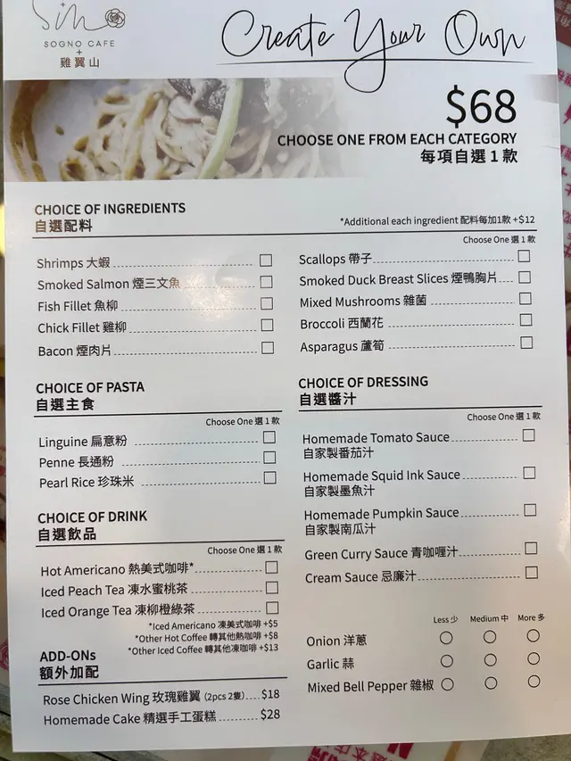 Sogno Cafe x 雞翼山 (屯门) 网址: https://s.openrice.com/QrLS0JHSB00 地址: 香港屯門海皇路23號御海灣地下19號舖 电话: +852 31608696