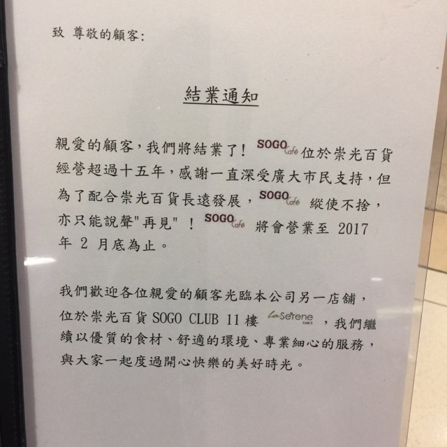 初二去铜锣湾接咗肥髀先食午餐,落崇光地库揾食,见呢间日式西餐厅外观唔错,门外有餐牌架,点知见到将会结业通知!感到可惜!入内好似旧时酒店西餐厅,花布单人梳化小圆枱!枱面嘅瓷糖罐都好雅致!播住轻音乐,半满都唔嘈杂!食物西式为主,款式唔算多!有三层afternoon Tea set!肥髀想食牛扒!叫一份分享餐汤:蘑菇忌廉汤:非常热,忌廉滑,有粒粒蘑菇,好香蘑菇味!餐包:普通牛油餐包,烘热咗,但面包较干!唔搽牛油食略干扒美国安格斯肉眼配烧汁($278)卖相靓,牛扒唔算厚,做到叫嘅5成熟,不过唔似肉眼,反而似西冷嘅质感,牛味浓,啲筋位都唔韧,配淡烧汁刚好,唔会抢走牛扒味,配菜蔬菜几特别用旺菜、翠肉瓜同蘑菇片(似日式家常菜)蔬菜太淋!味道唔错!薯仔烧过,质感略干!自动跟多碗烧汁同芥辣!细心!味道几好!迷你香蕉班戟(跟餐升级$19)卖相靓,班戟薄,入面忌廉滑,香蕉熟香甜,好味!莱斯特级牙买加蓝山咖啡(跟餐升级$46)店员介绍好坦白,话佢哋用中级蓝山咖啡,唔会好浓,微酸!上菜𠮶下好惊喜,𠮶个银托盘好靓!(即刻高级晒)上面白瓷杯加牛奶罐好雅致!咖啡够热,加埋奶及啡糖饮好香浓!刚好平衡了正餐嘅油腻感!店员斯文有礼!呢度速度唔快,悠闲但唔系hea! 只系上菜唔会急,慢慢等,呢度嘅整体速度唔似香港咁快!会好快回应招手!旧式日本西餐,可惜做到2月底就结业!…查看更多