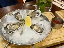 星期六晚同姊妹血拼完去咗荃湾**Sol House Oyster Bar And Restauran,贪佢够静又唔逼人,啱晒倾密偈👯♀️。餐厅灯光偏暗黄,枱面摆咗小蜡烛,播住轻爵士,坐喺软皮卡位度,望住开放式厨房师傅手势,成个氛围好relax~🦪 时令生蚝 😍😍😍😍今晚系法国Gillardeau,海水味爆棚!蚝肉爽脆带甜,跟嚟嘅柠檬同辣汁一啲都唔抢戏,食完仲有阵矿物回甘~🐟 意式腌制薄切烟三文鱼 😍😍😍鱼片薄到透光,莳萝酸忌廉汁清新醒胃,但烟熏味可以再突出啲,而家略嫌被酱汁盖过。🍝 烤龙虾配意式香辣蒜片阔条面 😍😍😍😍龙虾钳肉弹牙到癫!蒜片炒到金黄脆口,阔条面挂满微辣蒜油,不过辣度可以再大胆啲🌶️。🍚 慢煮三文鱼扒配蟹子昆布汁意大利饭 😍😍😍鱼扒外皮煎香,肉质嫩滑到似豆腐,蟹子汁鲜味足,但饭芯可以再al dente多少少。🥔 烤薯仔配烟肉 😍😍薯仔外脆内软,烟肉碎咸香加分,不过份量细咗啲,两啲就清碟⋯⋯🍍 焦糖菠萝雪葩 😍😍😍😍冰凉酸甜平衡得靓,焦糖脆片同菠萝果肉夹到震,食完油腻感全消~☕ 意大利咖啡蛋糕 😍😍咖啡味浓郁,但蛋糕身偏干,如果夹层多啲 mascarpone 就完美啦!同好友一人一杯House Wine(白葡萄酒果香轻盈,红酒醇厚唔涩),慢慢锯住龙虾、嗒生蚝,成晚节奏够晒慢活✨。食物水准中上,环境加分,最正系冇人催交枱,倾到打烊都得~ 系甜品可以再精致啲,但整体已经够晒满足!💖…查看更多