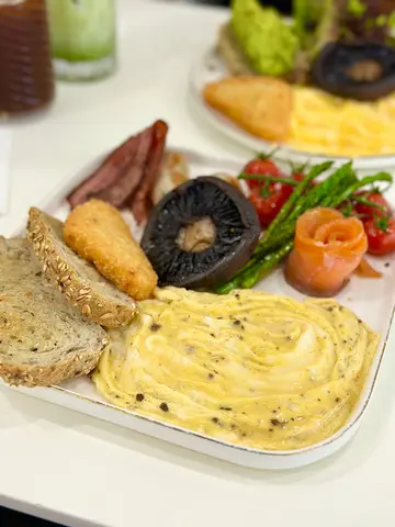 今天放假与老公前往元朗逛一逛,途经一间咖啡店,见环境清幽,谂住试一试,果然令我有惊喜。这是位于元朗港铁站对面约5分钟路程的Sole Coffee,我哋点了Deluxe全日早餐、轻量版全日早餐(额外加上了一份烟三文鱼),另品尝了摩卡、flat white , 选用了燕麦奶。Deluxe全日早餐是一份非常丰盛的早餐,其中包括bacon、德国香肠、烤大啡菇、烤番茄串、黑松露炒蛋、薯饼和多谷面包片。轻量版全日早餐其实都好丰富,有我最喜欢的牛油果,(额外加了一份烟三文鱼)整个早餐的食材十分新鲜和品质都让我留下深刻印象,味道刚刚好,给我们带来了无比的享受。饮品方面,摩卡有著浓郁的巧克力味道,和咖啡的苦涩完美平衡。Flat white 则带有柔和的奶香,口感顺滑。咖啡都是用高品质的咖啡豆制作而成,味道浓郁而香醇,绝对能满足咖啡爱好者的口味。Sole Coffee环境也值得一提。这家餐厅位于一个宁静的街区,充满著自然光线和绿植,营造出一个舒适而宁静的用餐环境。桌椅的布置简洁而雅致,让人感到放松和舒适。无论是与朋友聚餐还是独自一人品尝咖啡或美食,这里都是一个理想的选择。最后,Sole Coffee工作人员非常友善和细心,总是微笑著迎接客人,令到整个用餐加分不少。…Read More