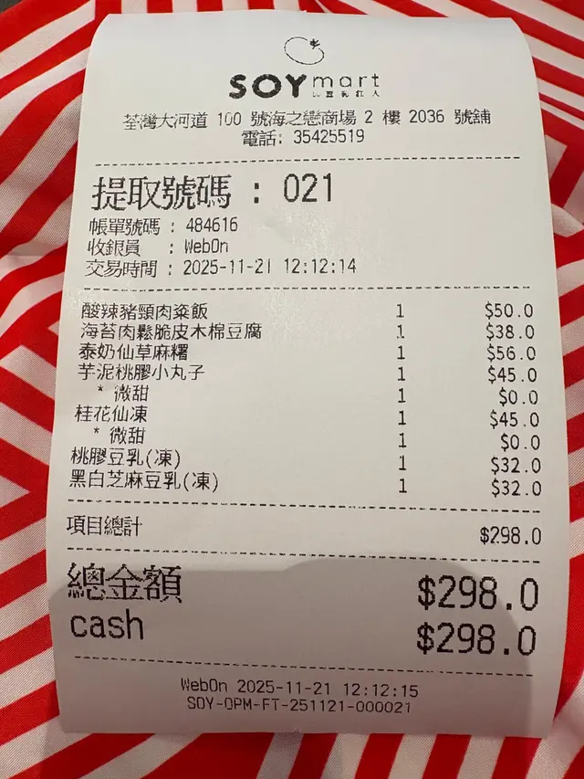 SOYmart by 豆乳狂人 (荃湾) 网址: https://s.openrice.com/QrLS0zvY5W0 地址: 香港荃灣大河道100號海之戀商場2樓2036號舖 电话: +852 35425519