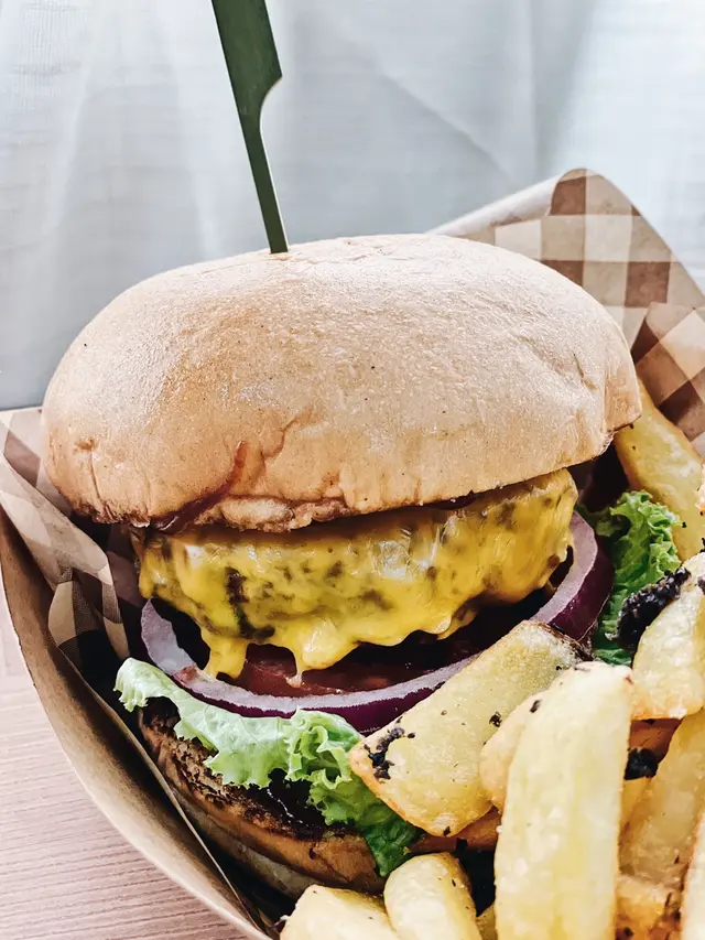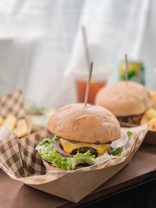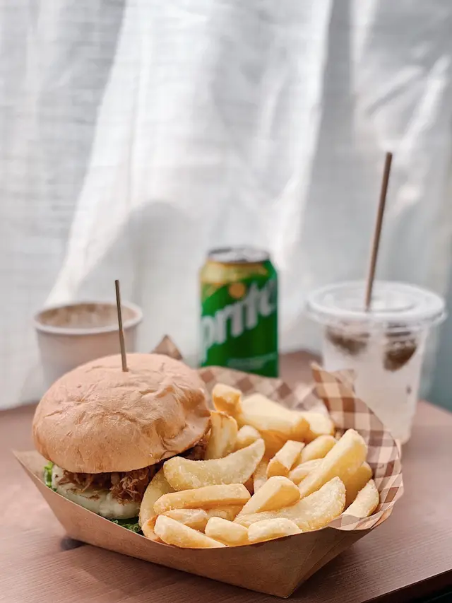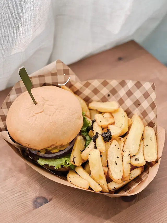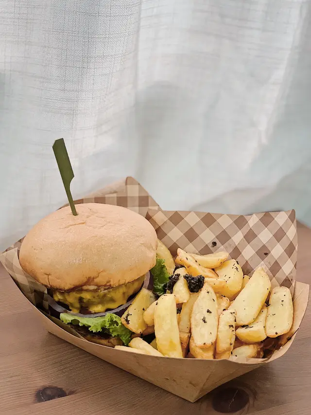 手打黑松露雙層牛肉漢堡包+奶茶+薯條+沙律