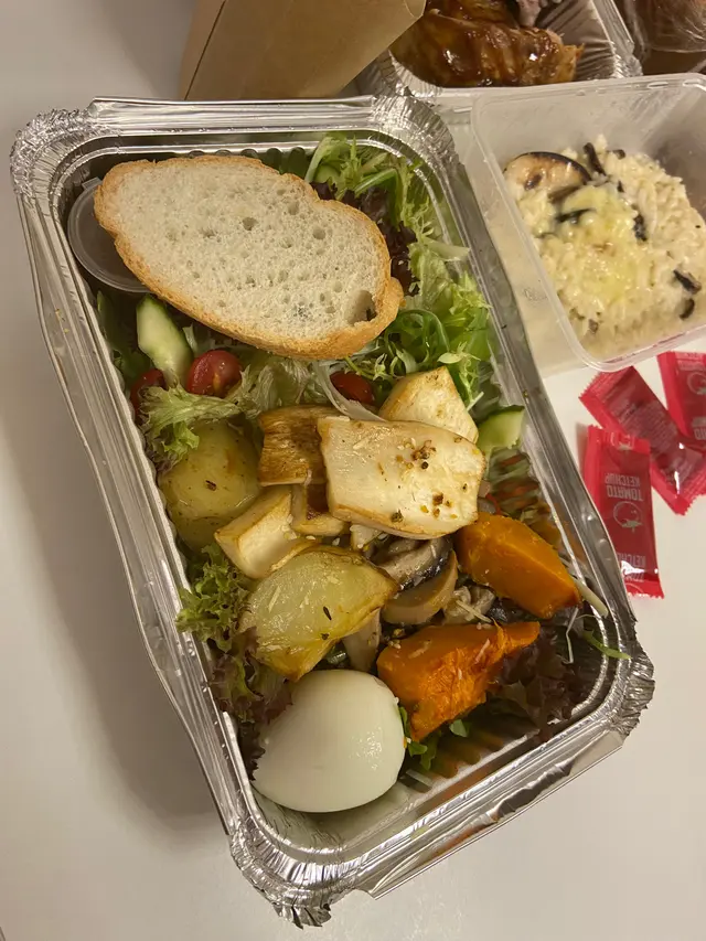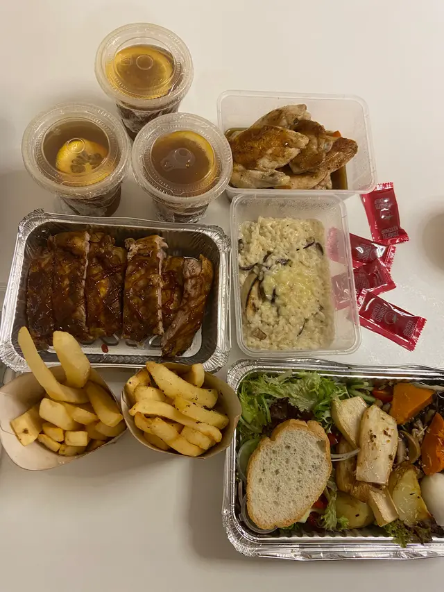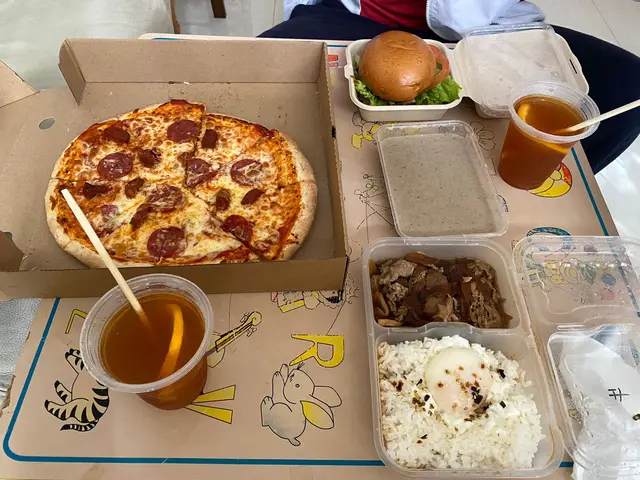 韓式辣醬泡菜豚肉漢堡包、牛肉飯配溫泉蛋、意式什肉腸薄餅、蘑菇湯、凍鮮橙紅茶