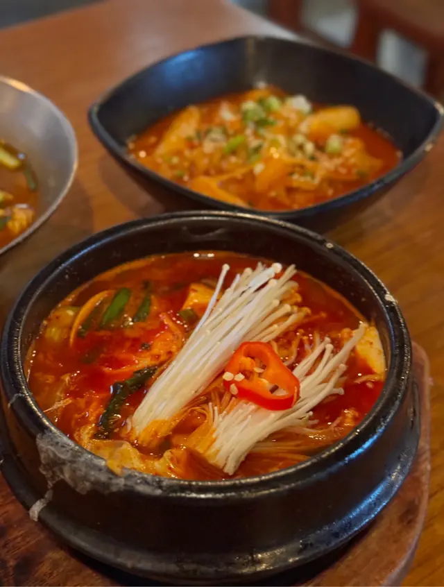 𖧧 ˒˒ 炒年糕 떡볶이 $85辣炒年糕的辣度也不低可惜年糕太軟淋不煙韌而且醬汁也很淡不濃稠可以不用浪費額度嘗試Spicy 𝐭𝐭𝐞𝐨𝐤𝐛𝐨𝐤𝐤𝐢 that brings the heat🌶️ sadly the rice cakes were way too soft and mushy — no chewy bouncy texture at all🥹 Sauce was surprisingly watery, missing that clingy punch you crave🥲 Honestly, skip this one and save your calories for something better👀𖧧 ˒˒ 蛋卷 계란말이 $133每枱必點絕對有原因的蛋卷配番茄醬和沙律醬還有芝士提升整體層次Every table orders this for a reason — legendary status unlocked🍳 Crispy golden 𝐞𝐠𝐠 𝐫𝐨𝐥𝐥 paired with tangy ketchup and creamy salad sauce🥚, then taken to the next level with a generous melt of cheese that ties everything together in gooey harmony😍𖧧 ˒˒ 牛肉炒粉絲 소고기잡채 $133牛肉炒粉絲也算不錯的粉絲彈牙香濃配雜菜們還有牛肉整體份量十足Solid 𝐁𝐞𝐞𝐟 𝐉𝐚𝐩𝐜𝐡𝐚𝐞 that totally deliver✨ Chewy, springy vermicelli soaked in rich, savoury sauce, tossed with colorful veggies and generous slices of tender beef🥩 Portion is legit huge — left the table stuffed and happy😆𖧧 ˒˒ 泡菜豬肉鍋 돼지김치찌개 $103不能吃辣的朋友不要點!!辣度挺高適合在冬天吃 喝了湯後身體會暖暖的泡菜的酸辣味挺出眾的加入嫩豆腐豬肉白飯吃Spice lovers only🥵 do 𝐍𝐎𝐓 order this if you can’t handle heat🔥 This 𝐤𝐢𝐦𝐜𝐡𝐢 𝐬𝐭𝐞𝐰 hits hard with serious chili kick, but it’s pure winter soul food: one slurp of that tangy kimchi broth and your whole body instantly warms up from the inside🥰 Silky soft tofu, tender pork slices, and steamy white rice…comfort in a bubbling pot🥘————————————————————————————Ssal Bori Ssal (尖沙咀)尖沙咀金巴利道78號金輝閣地下B號舖𓍼 #foodietiffhk 𓍼 #foodietiff尖沙咀…查看更多