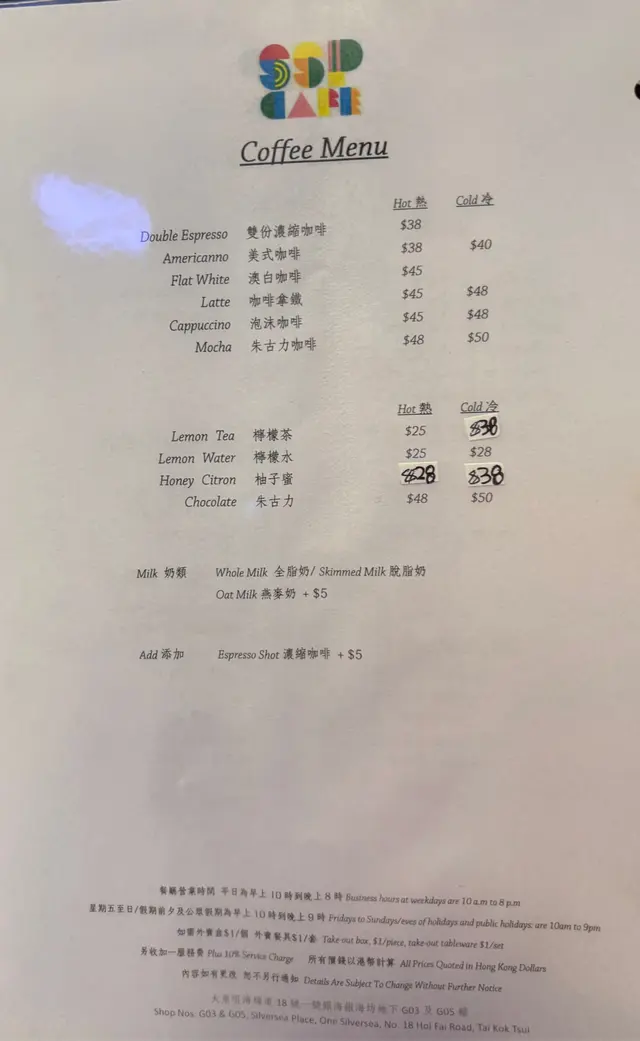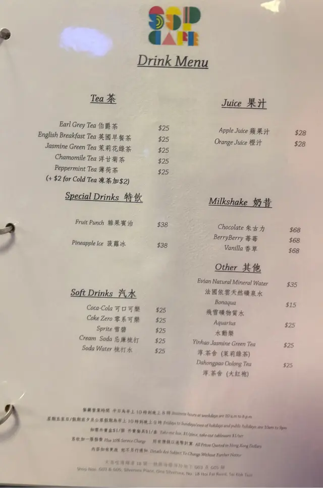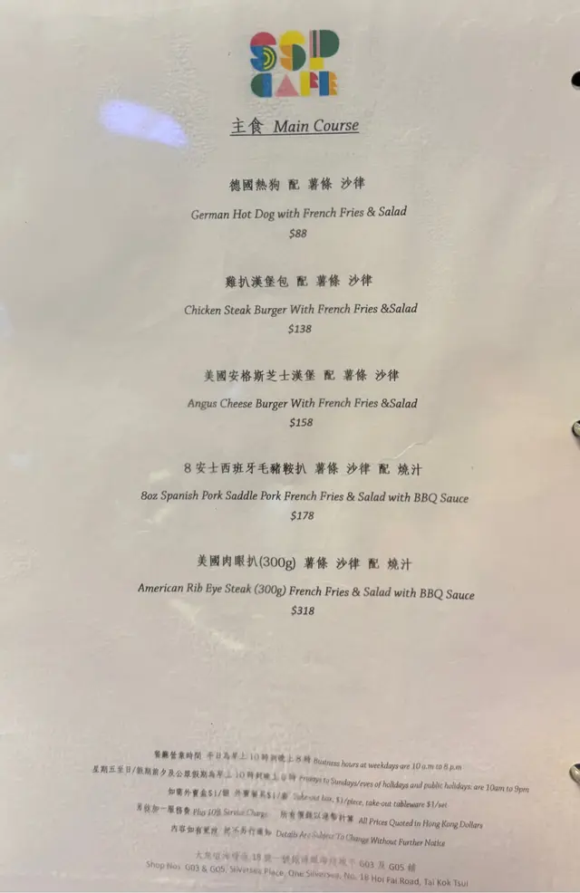 SSP Cafe (大角咀) 网上订位即赚Rice Dollars 网址: https://s.openrice.com/QrLS0RX4C00 地址: 香港大角咀海輝道18號一號銀海銀海坊地下G03&G05號舖 电话: +852 51299436