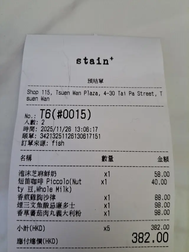 stain+ (荃湾) 网址: https://s.openrice.com/QrLS0BsOF00 地址: 香港荃灣大壩街4-30號荃灣廣場L1樓115號舖