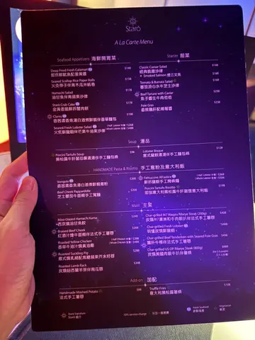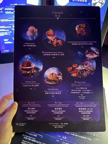 一直都想试呢间打卡💫星空主题嘅西餐厅!估唔到呢度除咗打卡之外,食物都好好食!今次我哋叫咗呢个晚餐食物好丰富⭐️Twilight Whispers Set Dinner⭐️🔸蕃茄流心水牛芝士沙律🥗浓郁嘅水牛芝士配上新鲜蕃茄及火箭菜沙律,好清新嘅头盘🔸炭烧和牛牛脷配青葱酱呢件和牛牛脷经过炭烧之后非常嘅惹味!🔸意式烟熏猪肉手工宽面烟熏猪肉肥瘦适中,宽面烟烟韧韧配上意式酱汁,味道非常配合!🔸 炭烧M7和牛肉眼扒🥩经过炭烧煮成嘅medium rare 熟成嘅M7 和牛肉眼扒,送到上枱就已经闻到阵炭烧肉香味,迫不及待放入口中,和牛嘅油脂香味浓郁充满整个口腔内😋,非常满足呀!🔸 意式烧乳猪配焦糖苹果芥末籽蓉🐷外层皮烧得脆卜卜嘅乳猪,肉质仍然鲜嫩Juicy,配上焦糖苹果酱就更加突出猪肉嘅鲜香味道👍🏻🔸自家制意大利经典芝士蛋糕满满咖啡香味嘅Tiramisu,软绵绵又香滑🔸 My Sign 星座蛋糕(杂莓朱古力慕丝蛋糕)好有惊喜嘅蛋糕,生日打卡必点,除咗有花火🎆效果,仲有干冰烟熏效果,杂莓慕丝蛋糕仲好好食添!🔸⚖️ Libra (2 glasses)呢度嘅Signature Cocktail 非常特别,系有12款唔同星座嘅酒精饮品选择天秤座嘅我就梗系拣返自己嘅星座饮品啦💜(White) Lychee Juice, Lychee Purée, Vodka, Lime Juice呢杯有荔枝香味,味道就较为清甜,酒味都有少少突出🍸 (Purple) Grape, Kyoho, Vodka, Lime Juice, Scorpio, Gin, Lychee Purée, Koyho Liqueur🍹呢杯就系提子🍇味道,偏甜,酒味唔系好突出呢杯适合女仔饮多啲呢度逢星期五、六仲有live Band🎙️!…Read More