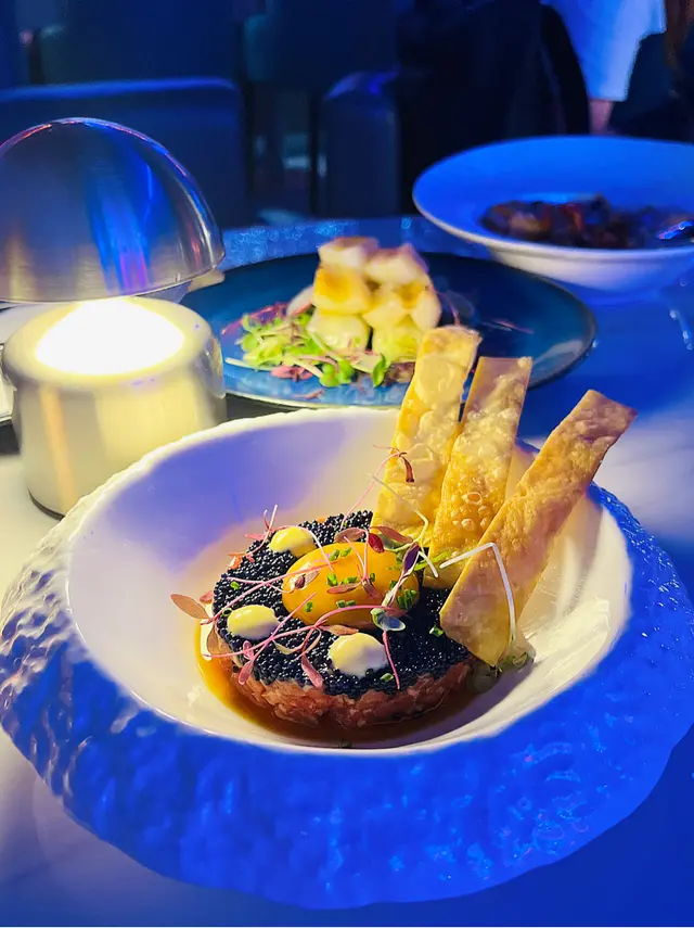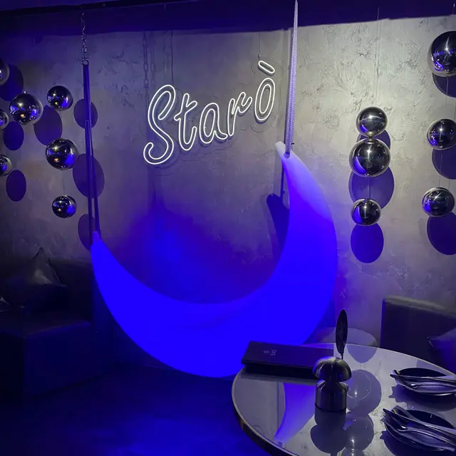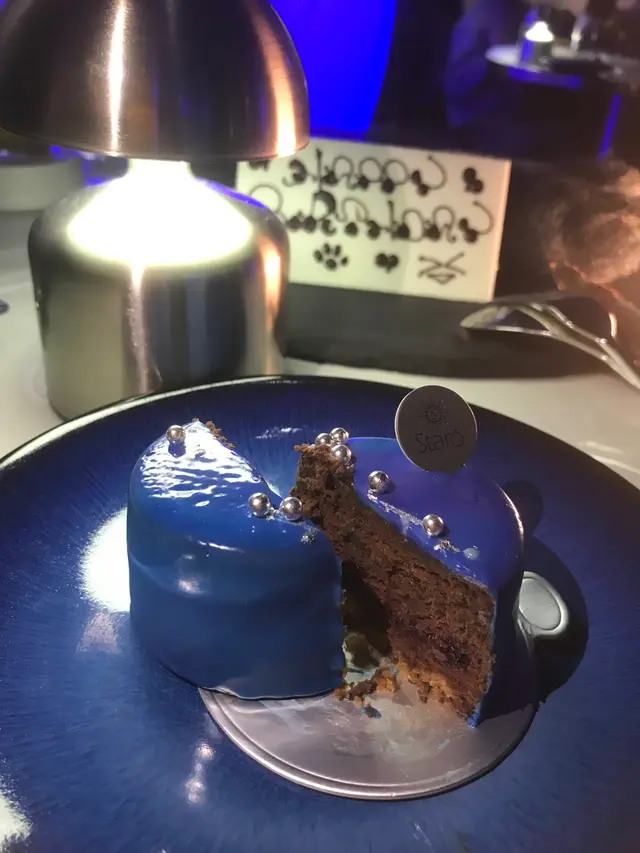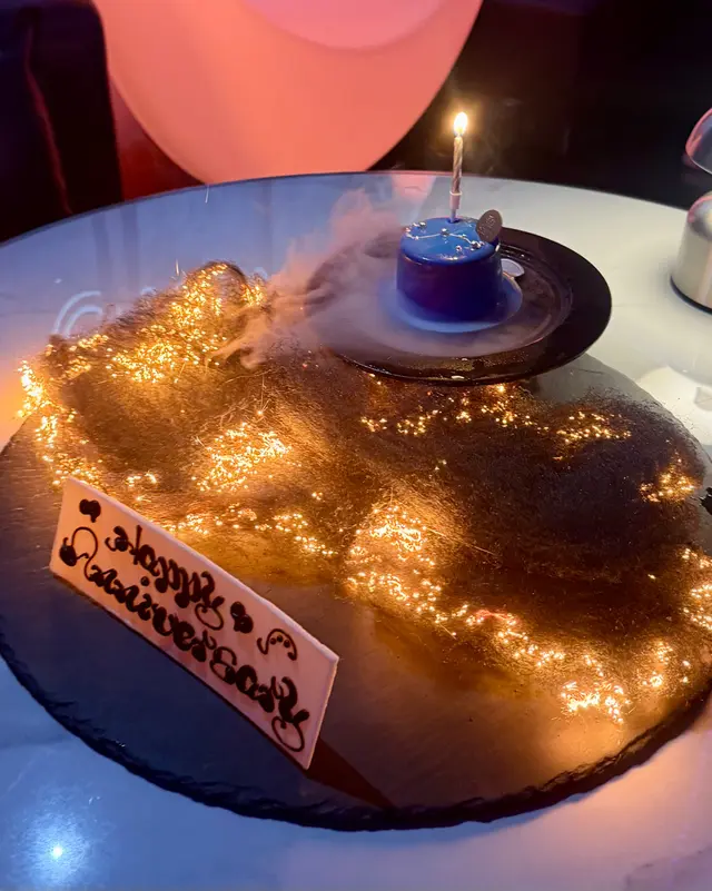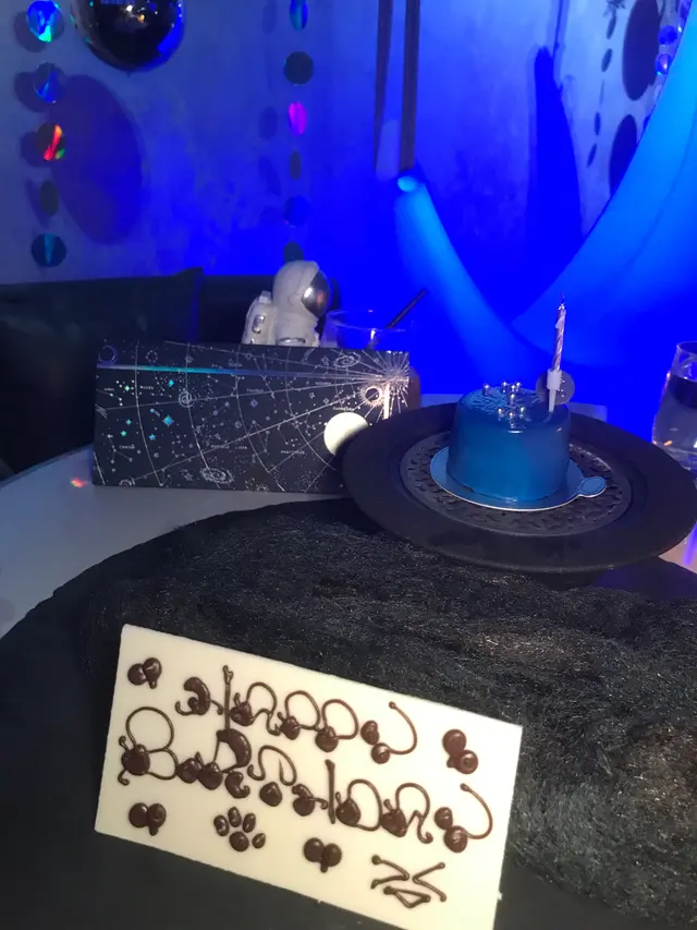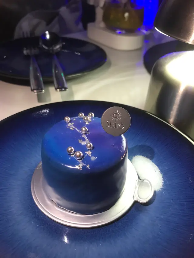 同另一半慶祝紀念日,想搵間浪漫餐廳度過,朋友介紹諾士佛臺以星空做主題嘅西餐廳「Starò」。一開𨋢門,昏暗環境閃著銀白星光,藍色同銀色嘅星球圍住半圓形吊椅,自己就不期然咁坐咗上去打咭。進入餐廳,最吸睛係天花吊滿銀色星球,加埋星空卡座勁有情調,連打開menu都係會發光,彷彿置身太空。聽住音樂享受晚餐,天花突然會有流星閃過,氣氛好浪漫,仲會定時有live band表演,同家人或情侶慶祝重要節日都值得推介。ღ𝓜𝓪𝓲𝓷𝓼⊛ 紅酒汁燴牛面頰伴法式手工薯蓉 $268 𝐵𝑟𝑎𝑖𝑠𝑒𝑑 𝑏𝑒𝑒𝑓 𝑐ℎ𝑒𝑒𝑘牛舌爽嫩,牛面頰炆得好軟腍,啫喱狀嘅筋位充滿膠質,完全唔覺肥膩,紅酒汁香濃帶微酸,薯蓉打得好香滑,裏面仲加咗粒粒粟米,伴碟有一件烤薯,入口先發現原來係一層層,外脆內軟。⊛ 即刨意大利黑松露牛肝菌燉意大利飯 $198 𝑃𝑜𝑟𝑐𝑖𝑛𝑖 𝑡𝑎𝑟𝑡𝑢𝑓𝑜 𝑟𝑖𝑠𝑜𝑡𝑡𝑜一上枱已經聞到陣陣黑松露香氣,見到一片片黑松露放面感覺矜貴晒,燉飯吸收咗黑松露醬汁好香濃,軟硬度剛好,口感濕潤,混和牛肝菌粒粒好有咬口,完全唔覺得呢個飯係素菜。ღ𝑴𝒐𝒄𝒌𝒕𝒂𝒊𝒍𝒔⊛ 𝐴𝑢𝑟𝑜𝑟𝑎 $98(𝐺𝑟𝑒𝑒𝑛 𝑎𝑝𝑝𝑙𝑒, 𝑃𝑖𝑛𝑒𝑎𝑝𝑝𝑙𝑒, 𝑙𝑖𝑚𝑒, 𝑆𝑜𝑑𝑎 𝑤𝑎𝑡𝑒𝑟)叫做極光,如其名顏色搶眼發光,杯面放咗一片菠蘿乾裝飾,菠蘿汁酸甜,淡淡青蘋果香味,加埋青檸汁同有汽梳打,好清爽。ღ𝑫𝒆𝒔𝒔𝒆𝒓𝒕⊛ 星座蛋糕 $148𝑀𝑦 𝑠𝑖𝑔𝑛 呢款蛋糕係需要提前預訂嘅,仲可以幫你喺朱古力牌上寫字,上枱一刻已經覺得好窩心,店員安排煙霧效果再點起火,喺昏暗中,火光好似熔岩咁慢慢燃燒開去,浪漫氣氛正到「嘩」咗一聲。打開一個黑色星球盅,見到藍色星空鏡面蛋糕,造型滿分,襯晒餐廳主題,要打卡就要及時。店員好貼心主動幫忙影合照,仲好專業咁打晒燈,真係超有儀式感。黑朱古力Mousse味濃郁又低甜,配雜莓酸酸地嘅感覺,味道層次豐富,好睇又好味,仲會送上賀卡及禮券,慶祝節日必點推介。#Starò 地址:尖沙咀諾士佛臺1號9樓…查看更多