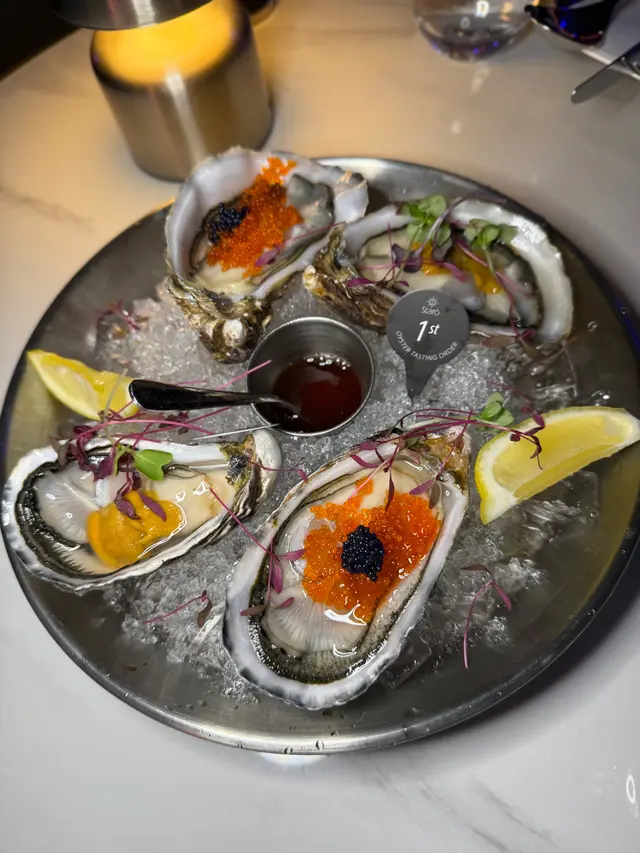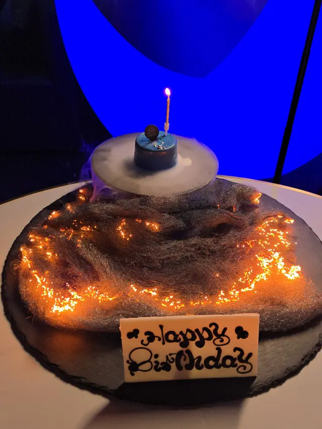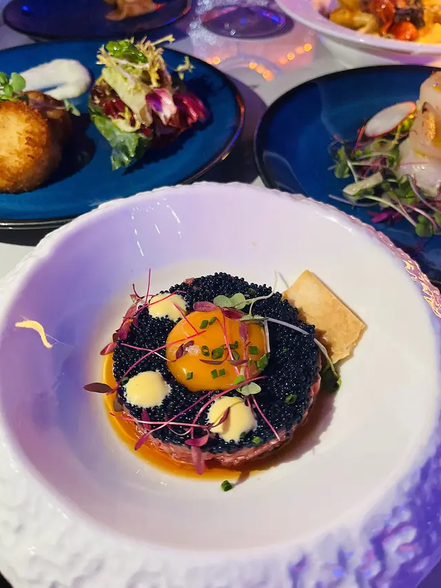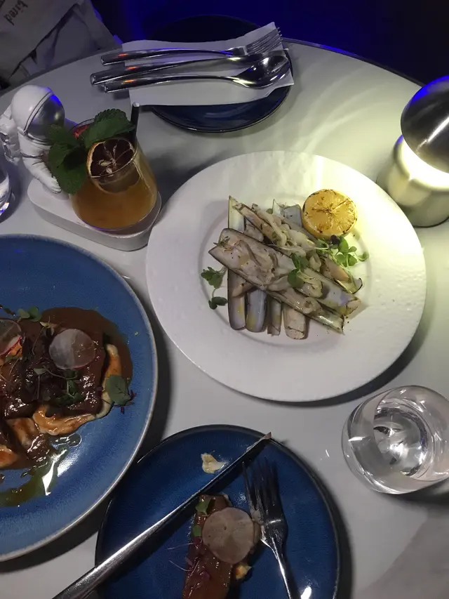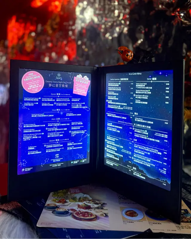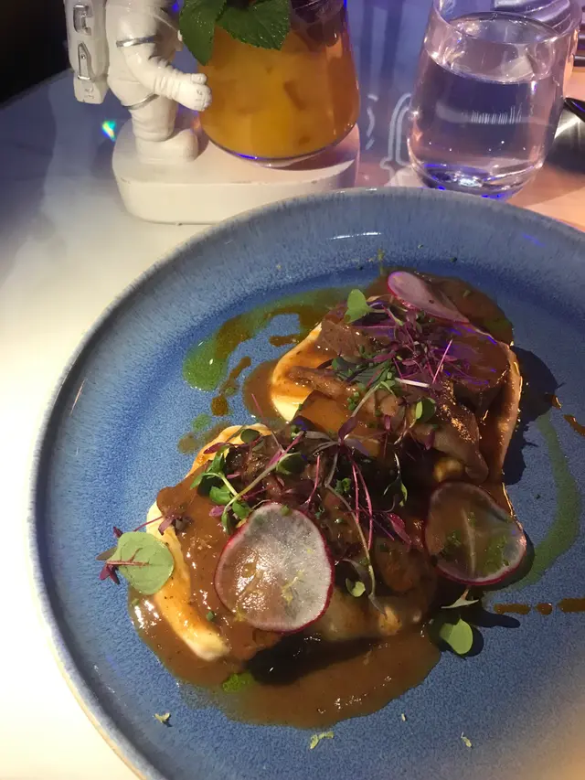 同另一半慶祝紀念日,想搵間浪漫餐廳度過,朋友介紹諾士佛臺以星空做主題嘅西餐廳「Starò」。一開𨋢門,昏暗環境閃著銀白星光,藍色同銀色嘅星球圍住半圓形吊椅,自己就不期然咁坐咗上去打咭。進入餐廳,最吸睛係天花吊滿銀色星球,加埋星空卡座勁有情調,連打開menu都係會發光,彷彿置身太空。聽住音樂享受晚餐,天花突然會有流星閃過,氣氛好浪漫,仲會定時有live band表演,同家人或情侶慶祝重要節日都值得推介。ღ𝓜𝓪𝓲𝓷𝓼⊛ 紅酒汁燴牛面頰伴法式手工薯蓉 $268 𝐵𝑟𝑎𝑖𝑠𝑒𝑑 𝑏𝑒𝑒𝑓 𝑐ℎ𝑒𝑒𝑘牛舌爽嫩,牛面頰炆得好軟腍,啫喱狀嘅筋位充滿膠質,完全唔覺肥膩,紅酒汁香濃帶微酸,薯蓉打得好香滑,裏面仲加咗粒粒粟米,伴碟有一件烤薯,入口先發現原來係一層層,外脆內軟。⊛ 即刨意大利黑松露牛肝菌燉意大利飯 $198 𝑃𝑜𝑟𝑐𝑖𝑛𝑖 𝑡𝑎𝑟𝑡𝑢𝑓𝑜 𝑟𝑖𝑠𝑜𝑡𝑡𝑜一上枱已經聞到陣陣黑松露香氣,見到一片片黑松露放面感覺矜貴晒,燉飯吸收咗黑松露醬汁好香濃,軟硬度剛好,口感濕潤,混和牛肝菌粒粒好有咬口,完全唔覺得呢個飯係素菜。ღ𝑴𝒐𝒄𝒌𝒕𝒂𝒊𝒍𝒔⊛ 𝐴𝑢𝑟𝑜𝑟𝑎 $98(𝐺𝑟𝑒𝑒𝑛 𝑎𝑝𝑝𝑙𝑒, 𝑃𝑖𝑛𝑒𝑎𝑝𝑝𝑙𝑒, 𝑙𝑖𝑚𝑒, 𝑆𝑜𝑑𝑎 𝑤𝑎𝑡𝑒𝑟)叫做極光,如其名顏色搶眼發光,杯面放咗一片菠蘿乾裝飾,菠蘿汁酸甜,淡淡青蘋果香味,加埋青檸汁同有汽梳打,好清爽。ღ𝑫𝒆𝒔𝒔𝒆𝒓𝒕⊛ 星座蛋糕 $148𝑀𝑦 𝑠𝑖𝑔𝑛 呢款蛋糕係需要提前預訂嘅,仲可以幫你喺朱古力牌上寫字,上枱一刻已經覺得好窩心,店員安排煙霧效果再點起火,喺昏暗中,火光好似熔岩咁慢慢燃燒開去,浪漫氣氛正到「嘩」咗一聲。打開一個黑色星球盅,見到藍色星空鏡面蛋糕,造型滿分,襯晒餐廳主題,要打卡就要及時。店員好貼心主動幫忙影合照,仲好專業咁打晒燈,真係超有儀式感。黑朱古力Mousse味濃郁又低甜,配雜莓酸酸地嘅感覺,味道層次豐富,好睇又好味,仲會送上賀卡及禮券,慶祝節日必點推介。#Starò 地址:尖沙咀諾士佛臺1號9樓…查看更多