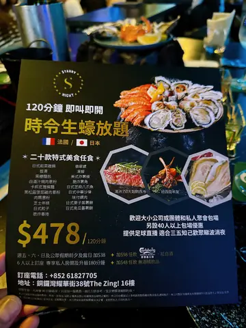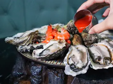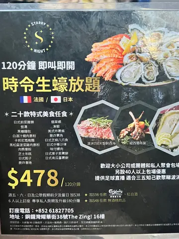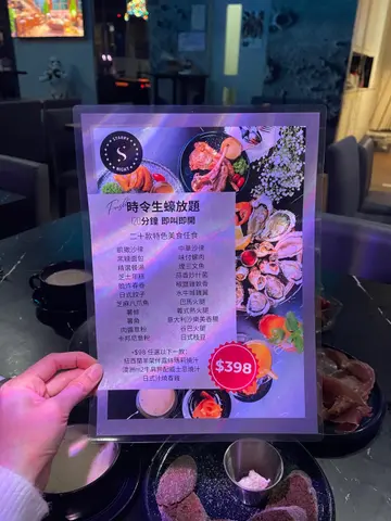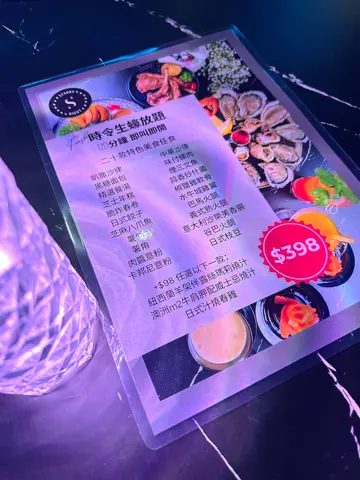 呢间酒吧餐厅而家主推生蚝任食,除咗生蚝任食,仲有多达20款嘅小食都可以无限追加,就连牛扒羊架𠮶啲都有,好丰富!餐厅用咗星空嘅装修,有少少酒吧嘅风格,多数都系梳化座位,够阔落坐得舒服~如果一大班人嚟嘅话,仲可以包场搞party,一大班人嚟庆祝!------------------------------🦪◖120分钟时令生蚝放题◗ $398一坐低会上咗一个海鲜拼盘先,有一打生蚝、海虾同蚬,生蚝都算肥美,口感爽脆,几鲜甜,食完再encore,可以疯狂一打一打咁叫🔥!生蚝即叫即开,所以都要等返一阵先有得食,可以试叫定先~除咗任食生蚝,仲有其他小食,推荐佢嘅芝士年糕、芝麻八爪鱼、水牛城鸡翼、椒盐鸡软骨、薯角,佢嘅卡邦尼意粉都做得唔错,软硬适中,够挂汁有奶香!🥩◖澳洲m2牛肩胛配威士忌烧汁◗ +$98佢呢个牛肩胛超厚切,原件上,外层焦香,里面肉质鲜红色,肉汁锁得几好!夹杂着啲筋膜部位,比较难切,但咬落去又唔会话好韧,带有浓郁嘅牛香~🍹◖荔枝梳打◗ 荔枝果味浓郁,唔饮落唔算太甜,仲有一串荔枝果肉喺面,打卡都几靓🌿◖Mojito◗ 味道偏酸,带啲薄荷叶香味,清新开胃🍩◖Oreo Milkshake◗ 杯奶昔好靓,呢杯沙冰打得够细,奶底有好浓郁嘅椰子味,稍微盖过咗Oreo嘅味道~🌟Encore指数:8.7/10…查看更多
