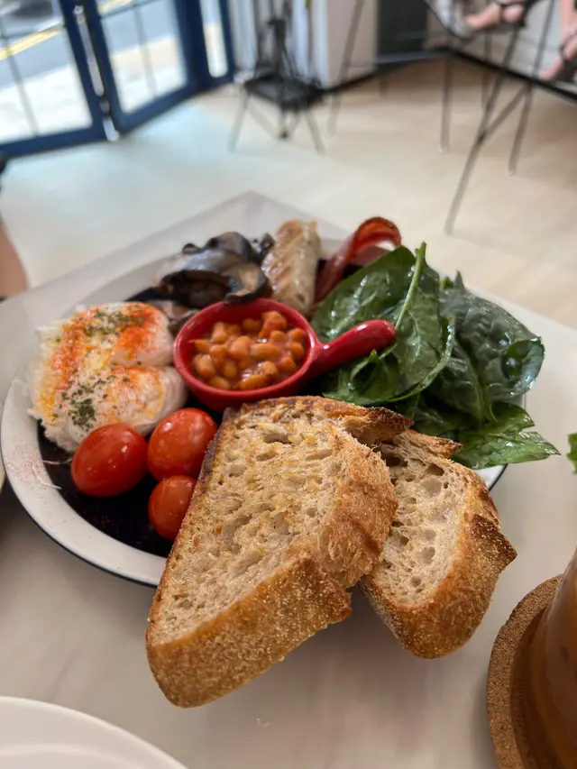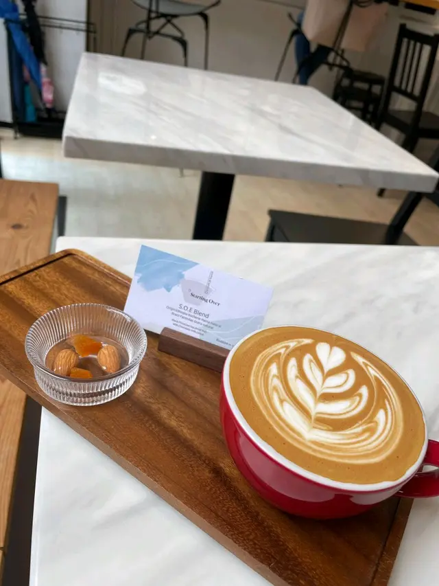 Starting Over Espresso is a coffee shop sitting next to Tai Kwun in Central. It has a very catchy and instagrammable blue and white facade with simple but stylish interior decoration. It is a good place for enjoying tranquility and coffee in the buzzing central district.I tried their SOE all day breakfast this time and all typical English breakfast ingredients such as bacon🥓, sausage🍖, mushroom and baked beans 🥫are on the plate, all nicely cooked and flavoured. I especially enjoyed their sourdough 🥖which is really chewy and toasted till perfectly crispy on the outside. It’s the perfect breakfast to get the day started!Their coffees ☕️are decent as well. I tried their oat milk latte this time and it’s aromatic and flavourful! …查看更多