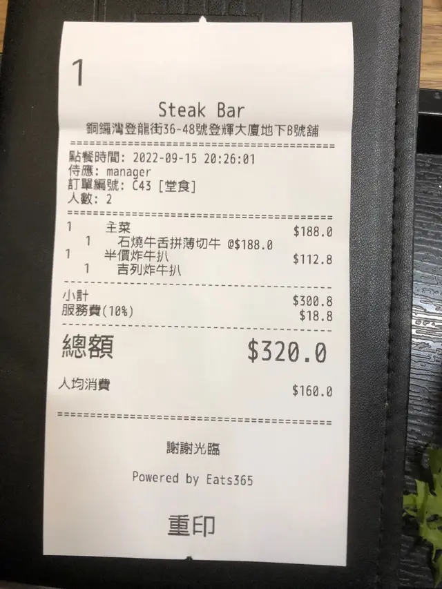 Steak Bar (铜锣湾) 网址: https://s.openrice.com/QrLS0hy4400 地址: 香港銅鑼灣登龍街36-48號登輝大廈地下B號舖 电话: +852 26747688