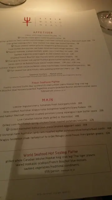 It's been a while since the name "Steik World Meats" popped up except for a recent Restaurant Week promotion. The last time I recalled checking this place out, they had a private event going on that evening so that was the end of it.But when the gang asked me to name a place for lunch this afternoon, this fine dining sister of the legendary Jimmy's Kitchen suddenly came to mind.We decided to order a few lunch sets to share among the five of us. Classic Caesar salad with candied parma ham, croutons, parmesan cheese and anchovy dressing was obviously one of the more popular choices as everyone was fighting for something green to start things off. Not bad (Grade: 3.5/5).I thought it will be a huge mistake not to order this 63 degree slow-cooked egg with grilled asparagus and toasted almond dressing when asparagus is in season. As expected, the asparagus was nice and buttery and of course, working well with the egg yolk (Grade: 3.5/5).Out of the five starters, house smoked salmon was probably my favorite starter, but mainly because of the very refreshing apple jelly.As for the main courses go, we pretty much took the same approach and have everybody share bit and piece of each dish. Broccoli and cherry tomato orecchiette ($158) was barely touched so judging from the responses, it's a very average one from the bunch (Grade: 2/5).Well, it was tough to share the classic beer-battered fish and chips with garden salad and house made tartar sauce ($178) among us because there was no way we could cut this into 5 pieces. But based on the little portion that I got, it was pretty decent. The beer batter was really nice but the fish was just OK in my opinion (Grade: 3/5).Now I am starting question whoever responsible for ordering here. Another fish course? Like the previous fish and chips just ahead of it, it was a decent dish. The texture of the slow cooked salmon fillet ($188) was slightly soft but that's what sous vide does, right? I didn't like the bed of cauliflower purée though as the texture was more like a porridge to me (Grade: 3/5).I thought the star of the afternoon belonged to this pan seared US prime tenderloin steak diane ($298) with potato purée, mushrooms, broccoli and beans. The tenderloin was tender and pretty juicy. I guess one can't go wrong ordering steak at a steakhouse, right (Grade: 4/5)?Passion fruit pavlova, chantilly cream and passion fruit coulis was light with a good balance of acidity (Grade: 3/5).Tiramisu with mascarpone, ladyfinger biscuit and expresso wasn't very good. I was expecting something much more airy and creamy but that's just my personal preference (Grade: 2/5).I remembered this is some kind of parfait (I think). Looks more like one of those Italian desserts from Sicily to me though....(Grade: 3/5)I like the starter portion of this meal a bit more than the main course and dessert part. But for the price we were paying (around $200 per head), I wasn't complaining too much (coz service and ambiance were both very good and oh yes, someone else was settling the bill!).…查看更多