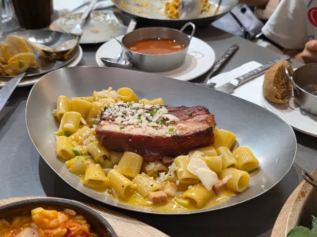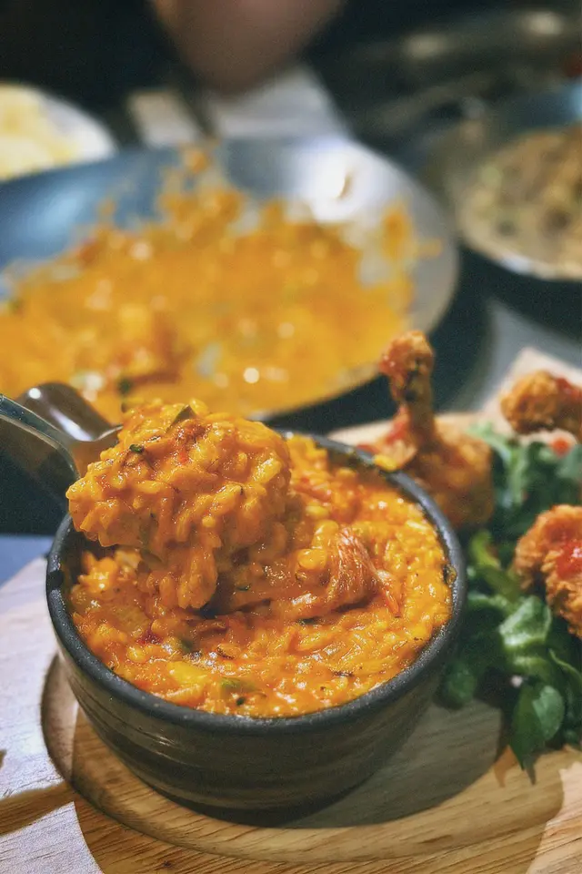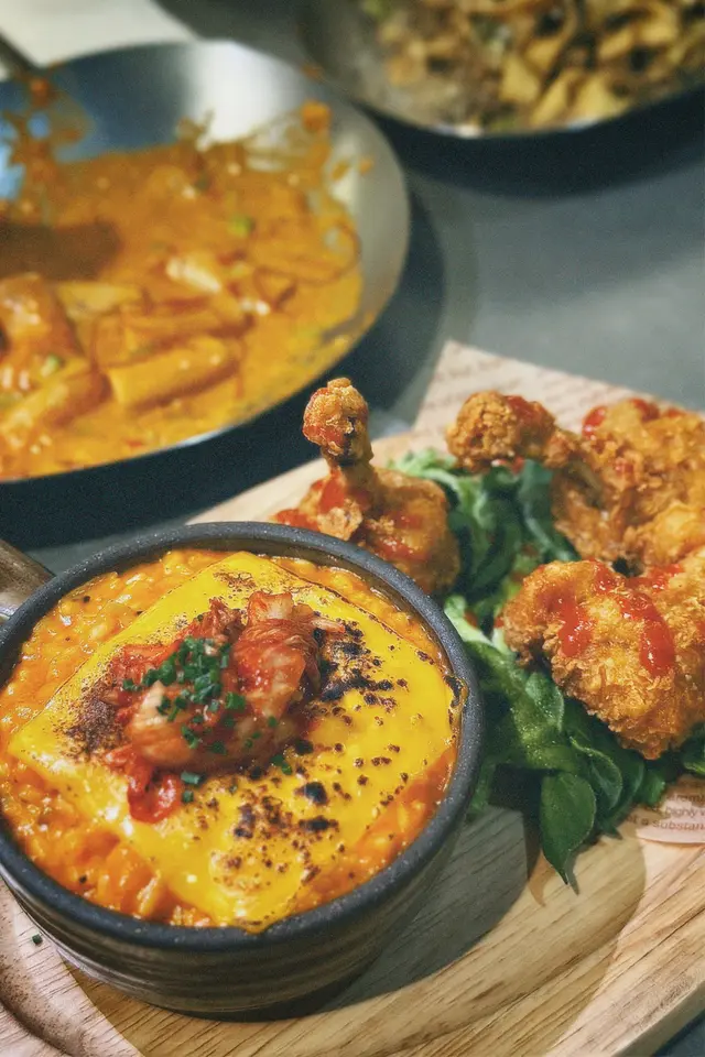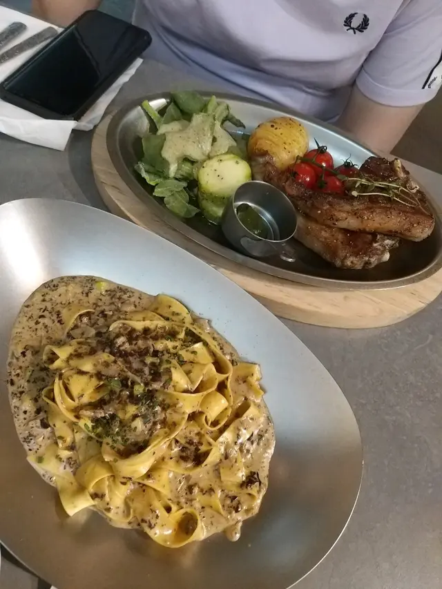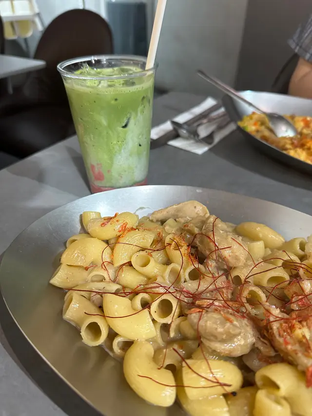 對我來說,入屯門有點山長水遠,趁這天跟家人忙完事情後,就來盈豐商場這邊吃個午餐。這邊都有不少CAFE,見Stimulate Cafe & Restaurant午餐多選擇,而且價錢都合理,就試試吧﹗套餐包湯或沙律、主菜、飲品(凍或熱的柚子蜜/美式咖啡),凍的美式咖啡不錯呢﹗起初以為自己誤會了,原來湯連餐包或沙律都是可添加,這天的餐湯是雜菜湯,比較甜;沙律是冰菜,太貼心了。喇沙卜卜蜆意大利飯$88,意大利飯的軟硬度適中,不會過腍,微辣中帶點椰香,有約十粒卜卜蜆,都幾大方,絕對對得住這價錢。明明同行家人吃不到辣,奇怪又再點個辣的,韓式芝士泡菜炸雞煲仔意大利飯$108,炸雞粉漿不多,炸得可口,加上韓式辣醬,好惹味﹗而這飯呢,別看這煲仔容量小小的,都幾飽,飯粒也是用泡菜汁煮過的,所以是貫徹的泡菜辣。炙燒豬腩卡邦尼粗管粉$88,豬腩炙燒後,脂肪部份都變得軟滑,油香十足,卡邦尼的濃稠度恰恰好,微濕潤不黏口,Q彈的粗管粉正好盛著醬汁,推介。澳洲豬西冷(2件)配薯菜及甜薑汁$188,豬西冷煎得香口,入口軟嫩多汁,肉汁香甜,配上甜薑汁,蠻特別的﹗薯菜有冰菜、粟米芯、脆玉瓜、一口蕃薯、薯仔,配搭豐富,好心誠意。…查看更多