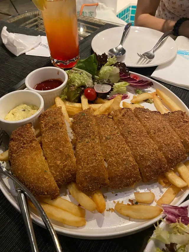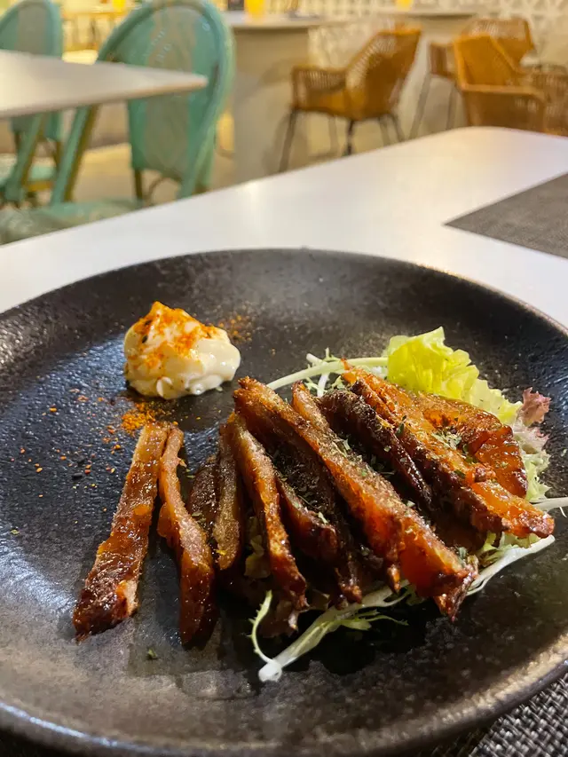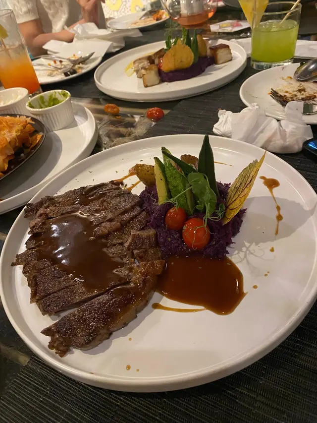 行過旺角見到樓下有個阿姐派張傳單,見到傳單上嘅相俾佢吸引咗上去食。一上到餐廳成間都係摩洛哥嘅裝修風格,好適合打卡喎。原來七點前仲有happy hour ,就叫左杯French 75,以Gin 同Lemon Juice做base,酸酸甜甜,好適合女仔飲。雞泡魚乾呢度嘅雞泡魚乾唔同出面嘅其他雞泡魚乾,出面嘅會燒得比較乾身硬口,呢度係保持濕潤,口感煙煙韌韌。虎蝦芝士龍蝦粗管通心粉呢個雖然份量唔多,但佢嘅醬汁好Creamy,而且個粗管通心粉好煙韌,包住一粒粒的爽口蝦肉,食完都唔夠喉啊。🤣🤣火山熔岩芝士和牛漢堡上枱嘅時候職員會將溶咗嘅芝士淋落個漢堡包上面,個漢堡扒有驚喜,竟然一啲都唔乾,而且佢嘅配料都好多,有蕃茄生菜洋蔥仲有酸瓜,伴碟嘅薯條係粗身薯條,而且份量好多,點埋啲芝士醬食真係好邪惡啊。呢度仲有室外同室內的座位,適合中意坐室外chill 住的客人,職員服務都好由客人角度出發,要大讚👍👍…查看更多