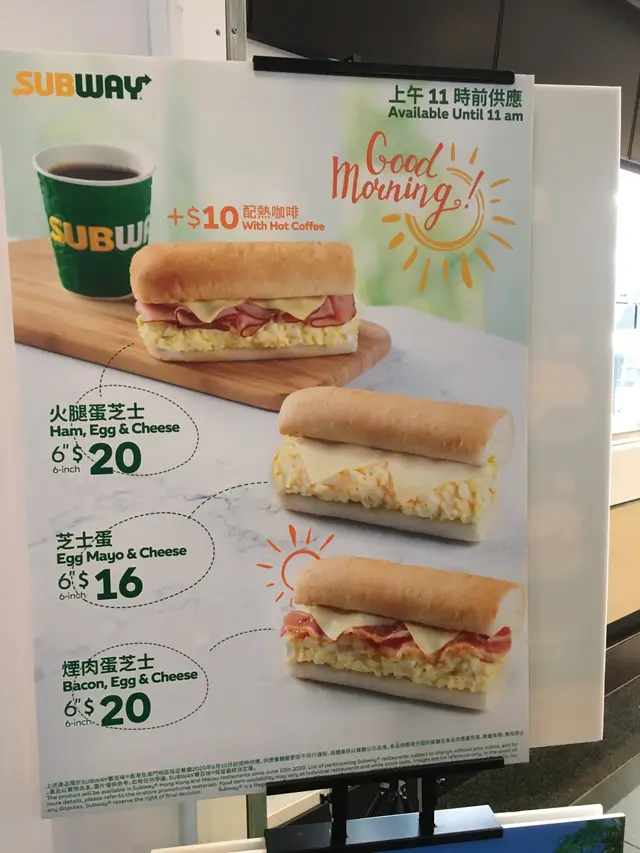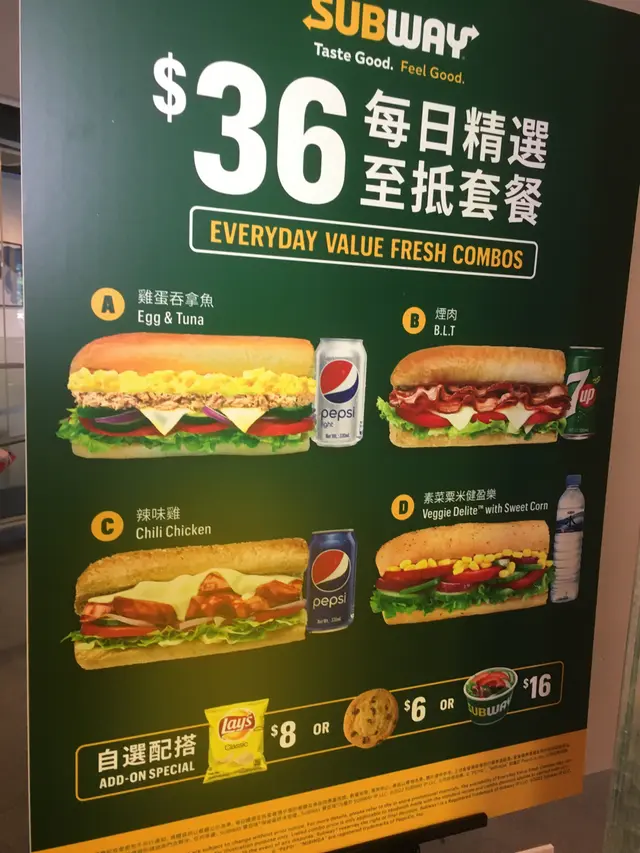 SUBWAY (金钟) 网址: https://s.openrice.com/QrLS07PaB00 地址: 香港金鐘添美道1號中信大廈2樓206號舖 电话: +852 21910500