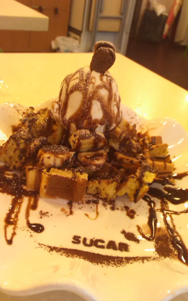 For a Hong Kong dessert place, there are not much options here, probably because most people come here either for the molten chocolate cake or waffles. Other choices include their (tiny) egg pudding and tofu pudding with variations. we ordered: Tofu Fa with Strawberries + coconut milkThe coconut milk was actually NOT my choice. They just gave it to me... I looked at the menu again and saw that there was a choice of coconut or mango sauce...but it would have been nice if the person who took my order asked me if i wanted either or any at all! I would actually have preferred plain with syrup and fruit...but this was not bad so we just ate it. The tofu fa itself was actually like eating soft tofu - not silken as it was not smooth at all! The curd was set very 'hard' so it's much heavier than regular tofu-fa...I wonder if this is their intention? But their menu says 'tofu fa'...Anyhow, strawberries were fresh and coconut milk had syrup added to it so it was more liquid, not heavy, and gave flavour to the tofu pudding. Hazelnut waffleThis took a longer time as it was made-to-order. It looked amazing - esp with the 'sugar' dusted on the plate. Aesthetically this was pleasing - the had also cut up the waffle (one piece) and stacked it nicely with the scoop of chocolate ice cream on top. How about to the palate? Well the waffle itself was hazelnut-flavoured, true to its name. It was also surprisingly light - not anything like belgian waffles or the ones in flying pan for that matter. The lightness of the batter reminded me of the egg-waffles from good street vendors. I also appreciated the crispness - even the last piece at the end was still slightly crunchy. The ice cream however, was very bad. For $3X I would've expected either more waffles or better ice cream to go with the single waffle, however the ice cream was so light it tasted like the cheap variety or frozen mousse.... C'mon even Dreyers would be better! So i guess the only reason I would come back is for their light and crispy waffles but nothing else really entices me here. …查看更多