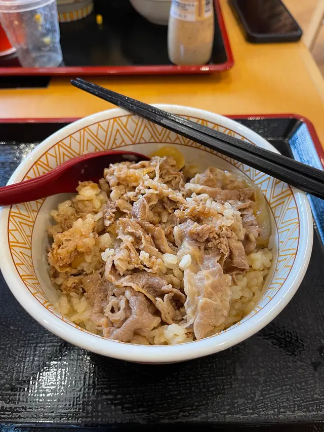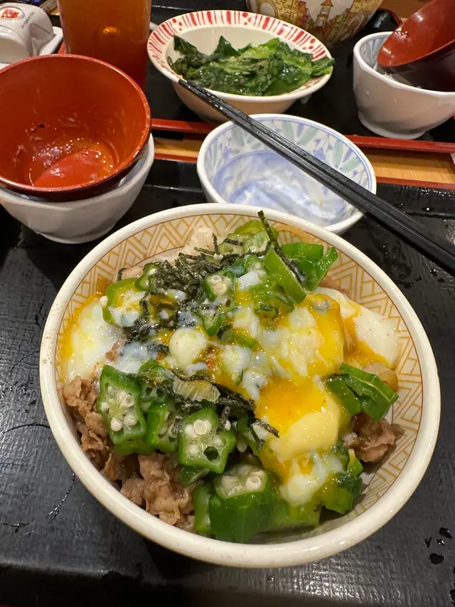 算不上美食但一定係我心中既平民飯堂之選!打開餐牌有好多選擇,唔係牛肉都有豬同雞同鰻魚,所以基本上一定簡到岩自己既飯。之前某D分店有山藥蓉,但最近食左幾間分店都無,唔知係咪已經無出,只好留待去日本食啦!入到去我每次都係叫秋葵牛肉飯+溫泉蛋,(師奶仔: 我計過係平過溫泉蛋牛肉飯+秋葵,但唔肯定兩個唔同配搭係咪相同份量)黎到即刻打隻蛋落去,鐘意既可以加少少七味粉,撈埋佢,雖然外貌不討好,但佢勝在有內在美。平時食飯好慢既我,每次都10分鐘已經可以KO個飯!希望香港分店聽到小小食家既心聲,再出返山藥蓉,我幫趁既次數一定再多D。查看更多