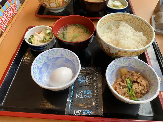 因為喺屋企附近,所以之前成日都嚟呢間舖頭食午餐或者晚餐,但係就從來都冇喺嗰度食過早餐,於是琴日就決定咗佢啦。個餐真係好抵食,$28有一碗麵豉湯,一個沙律仔,一隻溫泉蛋,一碟牛肉,一碗飯,一包紫菜。平時食午餐或者晚餐,牛肉飯都好入味,但係唔知點解食早餐,嗰啲飯就乜味都冇,即使加咗佢自家製嗰啲鰹魚汁豉油,都依然係冇乜味。:(個啲沙律酸酸地,食落有啲怪。呢間舖頭啲午餐同晚餐都唔錯,雖然早餐好抵食,不過我就唔推介早餐啦。查看更多
