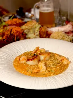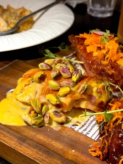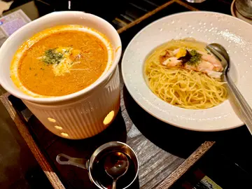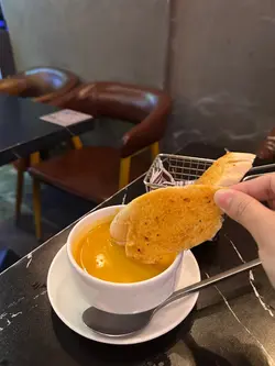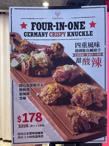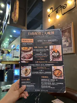 友人到九龙湾办事,相约到淘大商场觅食,事前做定功课见这餐厅口碑唔错便订位。8点后入座享85折优惠(猪手除外),另原价加一。《二人餐》· 忌廉野菌蘑菇汤+蒜茸包 👍🏻👍🏻👍🏻👍🏻(好味😋)· 牛肉批👍🏻👍🏻👍🏻👍🏻👍🏻(惊艳😍)· 西京烧比目鱼 配 法边豆杂菜薯蓉👍🏻👍🏻👍🏻👍🏻·日本松叶蟹肉天使沾面 配 蟹醋👍🏻👍🏻👍🏻(用蜡烛㷫住食减少蟹腥味,但味道比较咸)《追加》三重风味德国脆皮咸猪手 (开心果芥末蜜糖、西式避风塘、香蒜黑椒) 》 送自家酿制啤酒(柚子蜜糖)👍🏻👍🏻👍🏻👍🏻 可能太迟上菜嘅关系,食物送到时,已经饱咗7、8成,而且还是啖啖肉,感觉有点腻,开心果及黑椒味唔错,但避风塘却辣咗啲🥵《整体评价》整理上无论食物 和 服务质素都算高质,不过音响太大声,倾计困难(要嗌),同埋冷气不足,有啲热(坐外边布帘遮住嘅位置),另外灯光较暗,影相需打灯。经理非常主动助人,观察力强且服务细心,几次为同事嘅服务不足去补位,还会向客人了解到店嘅原因(有泊车优惠、想食非连锁式餐厅 及 享用高质西餐),是店内的招财猫。…查看更多