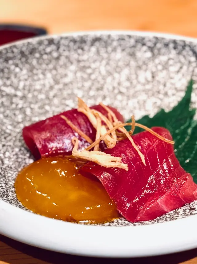 前菜有南瓜枝豆豆腐、日本大根同柚子車厘茄,各款清新前菜喚醒味蕾✨❝ 岩手縣波紋真蠔生蠔肉質肥厚飽滿,入口有微微海水鹹香,隨後散發出奶油風味,尾韻清爽悠長✨❝ 赤座海老赤座海老蝦身晶瑩剔透,入口肉質Q彈多汁,咬落釋放出濃郁嘅鮮甜🤤❝ 深海池魚刺身深海池魚肉質柔嫩,魚油甘香細膩,很好吃!!❝ 真羽太真羽太肉質緊實而有彈性,味道清爽鮮甜,令人滿足☺️細碎嘅柚子皮散發出清新嘅柑橘香氣,微苦嘅餘韻中和魚肉嘅油脂感,細節盡顯心思✨❝ 金目鯛金目鯛肉質肥美,油脂濃香卻不膩,入口後油脂緩慢融化,不錯不錯🥰❝ 松葉蟹肉海膽壽司松葉蟹肉質細膩,清甜蟹肉配搭濃甜海膽,濃淡平衡剛剛好🫶🏻~❝ 醋鯖魚濃郁嘅魚油香與醋嘅清爽完美平衡,醬油更為魚料增添鹹香,這個配搭很不錯!❝ 原隻鮑魚配蟹味噌鮑魚軟嫩鮮甜,蟹味噌則味道鮮鹹而濃厚,同鮑魚嘅清甜形成強烈對比,令人回味無窮~❝ 海膽刺身(配沖繩海葡萄及淡雪鹽)海膽甘甜滑順,海葡萄口感清脆,再灑上淡雪鹽提升風味,口感層次極致豐富🔥❝ 石垣鯛石垣鯛鮮甜風味突出,質地緊實而有彈性,咀嚼口感極佳✌🏻❝ 即席煙燻A4和牛師博即席煙燻A4和後,煙燻香氣濃郁,和牛油脂分佈平均,口感香滑,呢個好正!!❝ 活北寄貝活北寄貝口感彈牙,貝肉鮮香,好出色喎👍🏻❝ 銀鱈魚銀鱈魚油香濃郁,輕輕燒過更迫出油脂勁香口!!頂層再以少許北海道味噌點綴,鹹甜完美平衡很喜歡🥰❝ 拖羅拖羅呈現粉紅帶白嘅大理石紋理,肉質厚實,油感超重😍 係教科書式好靚好好食嘅拖羅😭❤️❝ 拖羅海膽太卷呢款太卷裏面有黃蘿蔔、拖羅,面層加上海膽、醬油蛋黃同炸蔥🫶🏻~幾鍾意炸蔥嘅酥脆為整體增添焦香嘅口感,各款食材結合層次都好豐富!!不過真係好大嚿,食完飽肚感直線上升🆙🤣❝ 海鮮湯味道甘甜,各款海鮮增添咗味道層次,卻不搶奪湯底風味,入口溫潤暖胃很好呢~❝ 芝士雪糕甜品係芝士雪糕🍦 未食嗰陣諗緊會唔會好奇怪!食落覺得幾得意,好似食緊芝士蛋糕咁🤣 作為呢餐嘅收結十分滿足~…查看更多