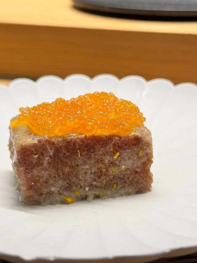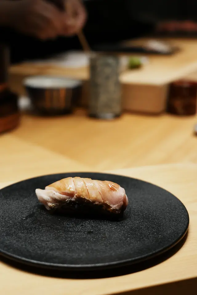 Seeing increasingly more media coverage of Chef Zinc, in recognition to what he did to promote the local seafood and produce, as well as his amazing food, I can also feel the pride as a regular patron. Today we return to this Shau Kei Wan secret haven to see what he has prepared for us.Occupying our usual spot on the 10-seat sushi counter, we were greeted by Chef Zinc and his team warmly. As I brought a bottle of wine to share with him, I did not order any sake. With the arrival of a couple of more guests, the dinner promptly started.First is the prized Uchiura Bay Kuro-Hokkigai with Yunnan Termites Mushroom. Chef Zinc first used the mushroom to prepare a broth to lightly poach the surf clam, making some cuts for easy bite, before serving together with the shredded mushroom. The combined bouncy and soft texture of the two was very pleasant, and the broth was sweet with umami.Second is the seasonal Kobako-Gani Chawanmushi. Chef Zinc toasted the shell of female snow crab to make a bisque from the extract, then added sauteed crab miso to whisked egg to make a silky soft steamed custard. On the surface, the orange-brown sauce was made from crab roe, rich in flavours with also a touch of acidity from wild kabosu to freshen. In the middle is crab meat roll wrapped in kombu, seasoned by very fragrant local fennel flower.Third is a dish Chef Zinc showcased in the earlier Red Hot Chef competition. Featuring a two-catty Lamma Island caught Star Snapper, Chef Zinc wrapped the fillet with its skin to make a roll, then steamed under a lower temperature to maintain a moist and soft texture. He further used the fish bones and soy sauce to prepare a sauce, the fish innards to make fish oil, then splashed back on the steamed fish in Cantonese style, to further enhance the flavours. On top are a couple of local garlic scape to give a mild garlic fragrance.Next begins a series of sushi, starting with Pacific Ocean Perch caught near Po Toi Island. Having aged for two weeks and seasoned with a bit of yuzu and sea salt, the fish has a sweet taste and very tender texture.The second sushi featured Chef Zinc’s favourite fish: Hirame. The 6-catty local flounder was huge in size, with a delicate mild taste and a supple, firm bite on texture. Nowadays many restaurants are offering farmed ones, so wild version of this size is rarely seen. It is a real treat.The third sushi brings us back to Japan, featuring Kawahagi from Oita. Using its liver to make a paste, then adding plenty of finely chopped scallions, the umami and savoury of the thread-sail filefish was amazing. One of our favourites in the evening.The fourth sushi features Toro-Sawara from Mie. The special Japanese Spanish mackerel is caught on lines individually, with exceptional fatty level, rich in taste like fatty tuna. After searing briefly on charcoal, the skin has become crispy. Season with a bit of sea salt, the fish oil enriches the flavours tremendously.Taking a break on the sushi, Chef Zinc’s brought us the seasonal Matsutake. Flown in from Yunnan on the same day of harvest, the prized mushroom is prepared in tempura style, without any seasoning, to enjoy the original taste. Bursting with juice, depending on preference one can also add a touch of salt or citrus to enhance the flavours.Then comes another of Chef Zinc’s signature, Shirako Risotto. Cooking cod milt for extended period to remove the unpleasant taste, it is then grinded to a thick paste and cook with matsutake mushroom, before adding in arborio to prepare this wonderful risotto. Some fresh Ganba Fungus, rated as the pinnacle of Yunnan fungus, are put on top, which supplements a beautiful unique fragrance. Truly fantastic.Another hot dish is Grilled Kinki. The channel rockfish has been marinated in shochu before searing on charcoal, to give a crisp surface while keeping the flesh moist. It is very tender, with an amazing taste of fish oil. The sauce is made from fish bones, hard clam and scallions, seasoned with a touch of sansho, rich in wonderful umami. On the side the lemon balm leaf gives the citrus fragrance to freshen the overall experience.Finishing some dishes with rich flavours, Chef Zinc brings us Pickled Yunnan Golden Ear Fungus to serve as palate cleanser, the fungus is cooked with lemon and honey, infused with a mellow acidity and helps to remove the unpleasant taste of the fungus. The interesting gelatine texture is also memorable.The second round of sushi starts from Bafun Uni, with multiple layers of sea urchin put on top of the roll. While the sea urchin is not in season, they are sweet in taste, with a melt-in-the-mouth texture and still very good and enjoyable, testimony to Chef Zinc’s effort to only pick the best quality ingredients.The sixth sushi features Buri from Oita, with the matured yellowtail very large in size, weighing almost 15kg. Chef Zinc uses half of the belly to prepare the sushi, while the remaining he puts to age for later use. The sear on the skin gives a nice crispness, with some shichimi sprinkled to add an extra layer of spiciness to season.The seventh sushi is Akami, with the lean cut coming from a large tuna weighing over 200kg. After marinating in shoyu briefly to infuse the meat with umami, the texture is very soft, with the perfect level of saltiness which made it unstoppable. It is great that I got to enjoy two pieces this evening thanks to Chef Zinc.The eighth sushi continues to come from the same tuna, but this time using the fatty cut of O-Toro. On the bite all the guests are amazed because it is so tasty, first because Chef Zinc smoked the fatty tuna with hay beforehand, and then using smoked minced garlic, replacing wasabi, as the condiment. A genius approach showcasing his talent.Finishing my bottle of wine, I decide to order an additional serving of sake, picking 大山 特別純米 ひやおろし. Brewed by 加藤嘉八郎酒造, this limited autumn sake has crisp acidity, perfect to match seasonal fish such as sardines with