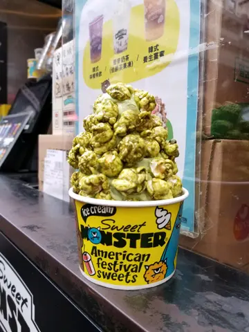 啱啱食完午饭,同朋友去旺角行下街,星期日嘅旺角人头涌涌,行左10分钟都唔够就已经觉得好热好焗😂 突然见到有途人拎住杯sweet monster雪糕,眼前一亮!原来旺角行人专用区有sweet monster嘅分店,即刻冲去买!
