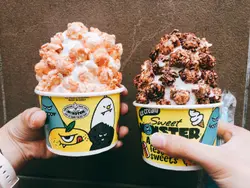 我地点左一个朱古力味,同一个士多啤梨味爆谷雪糕,比想像中大杯好多😱😱😱每一啖将爆谷同雪糕一齐食,口感好丰富,个人觉得士多啤梨味比朱古力味好食。不过真系好大杯,我哋同朋友都食唔晒啲雪糕😂
