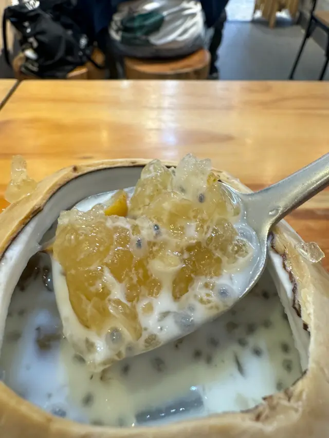 同啲鄰居喺青衣食完晚飯,意猶未盡,咁就過咗嚟荃灣食糖水。估唔到求其揀一間都有咁大嘅驚喜。入到嚟嘅時候先發覺全部都係椰皇,有鄰居好怕食椰子都躊躇緊揀咩好。經過詳細解釋椰皇同椰子嘅分別,最終都叫到一款來試。當佢哋食緊嘅時候覺得好好味我仲揀緊食咩好。睇見隔籬個芒果刨冰好似幾好,我都嗌咗一個刨冰,第一啖簡直係震驚味蕾,佢個冰底竟然全部都係椰皇晶唔係普通雪花冰。基本上係追住你食完全停唔到口,因為嗰種清甜配埋個冰底真係絕配,食晒啲冰中間仲有其他驚喜有個奶凍同埋龍眼肉。我就撈埋啲桃膠落去一次過食,簡直係滿滿嘅幸福感湧現。最後臨走嘅時候仲買咗椰皇水外賣,估唔到一間糖水舖淨係買椰皇都可以咁出色。查看更多