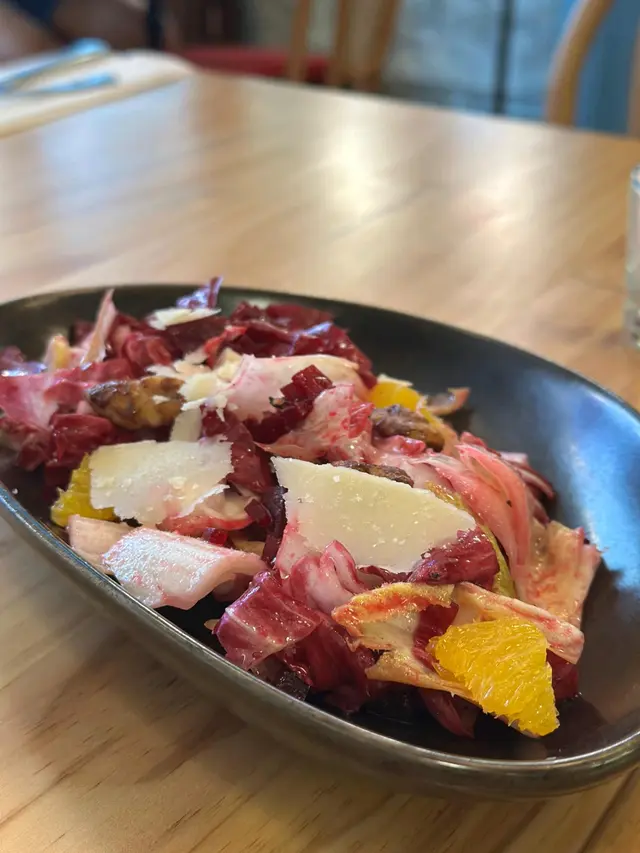 Endive and Beet Salad (v): Candied walnuts, parmesan, blood orange vinaigrette