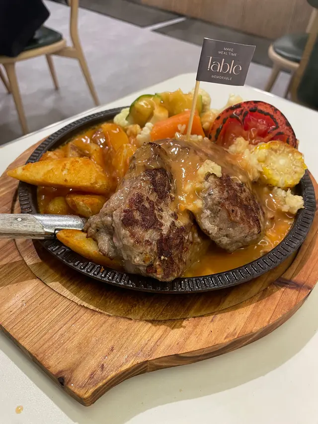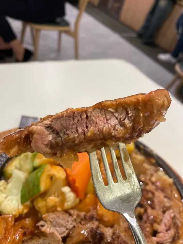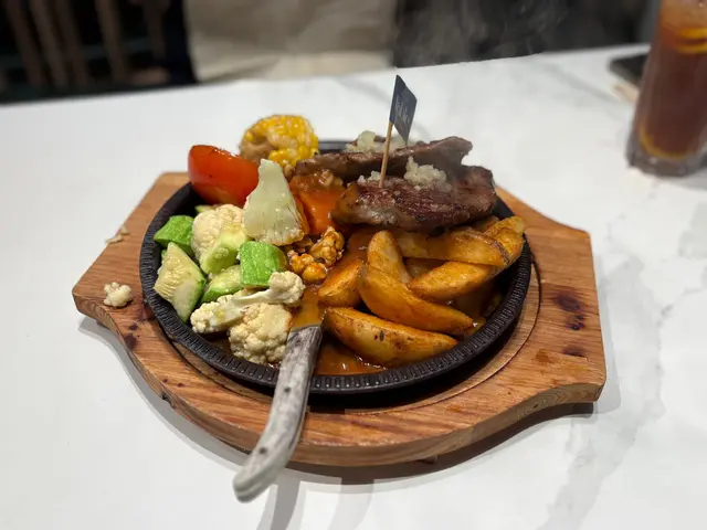 去完海洋公園有點該夜又餓,去黃竹坑Southside就最近,去到大概7:30都要等位,食完商場店鋪都關咗9成,好彩這餐唔錯啫😙紐西蘭西冷牛扒鐵板餐(黑椒汁)配羅宋湯$138。✨🫕羅宋湯: 熱餐飲杯上,羅宋湯味濃,湯料蔬菜滿滿,不過有啲酸,但大體上非常好飲。✨🍴紐西蘭牛扒: 我要求五成熟,但係真係熟咗啲,有點兒硬,不過配埋黑椒汁都幾好食,而且配餐蔬菜都好多種,仲有炸薯角😋✨🍴板燒厚切牛脷北海道咖喱蛋蓋飯$84: 牛脷厚厚的,但係好軟腍,一咬就開👍🏻;咖喱汁就唔夠香又唔辣,日本人口味有點甜😅;蛋就唔係好熟,勉強合格啦。✨🥢安格斯板腱牛肉石鍋烏冬$98: 成個石鍋上檯熱辣辣。蕃茄湯底好味;烏冬應該係讚岐烏冬,夠煙靭;可能放在石鍋裏便煮得太耐,有點兒熟😅,但總括來說好味的👍🏻✨🧋紅豆冰$15: 5:30後所有飲品半價,$15好抵飲,仲要紅豆🫘夠淋起沙😋✨3個人三百多,味道又唔錯又大份,性價比非常高,不過斟水要自己嚟,但門口有兩張檯可跟毛孩座,為毛孩家長多一個選擇👍🏻…查看更多