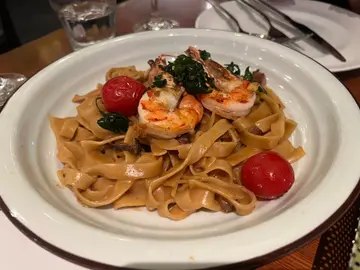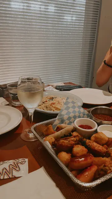 同friend子一行四人夜晚去咗呢间食野小食拼盘有鸡翼肠仔,蒜蓉包薯角 咩都食到啲意粉方面,嗌咗个大虾蒜蓉阔条面同埋卡邦尼意粉 都系大家一齐share味道算唔错每人嗌咗杯白酒 埋单大概三百几 味道算系咁…查看更多