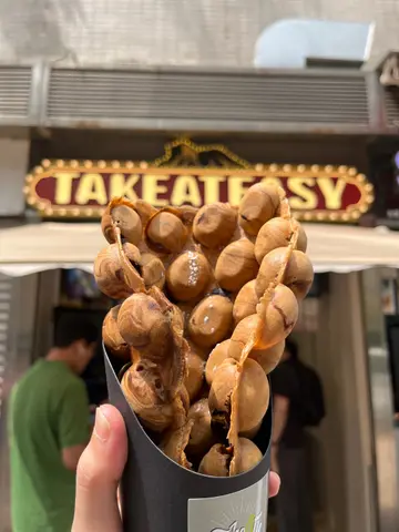 📍Takeateasy (大埔)由佢开系宝湖商场果阵已经食过 果阵同事买黑朱古力鸡蛋仔 拎左佢果啲黎食😂😂觉得好好食 之后自己都有去买过佢士多啤梨味鸡蛋仔但个人中意黑朱古力鸡蛋仔多啲知道佢系大埔开翻 又想食鸡蛋仔就去左呢间到食~佢啲野饮同鸡蛋蛋仔都几多款 而我依然系买翻黑朱古力鸡蛋仔😂😂下次食试下佢其他味先 斑斓味我都想试下~~~铺头都几多人等紧 要等15分钟左右仍然系我觉得大埔区入面几出色既鸡蛋仔~😋