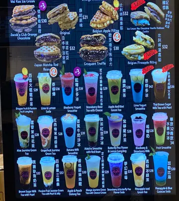 经过就买吃试试,当日点了这三份小吃。饮料是紫柠龙井茶,味道一般。这个是香脆原味鸡蛋仔,口感一般,里面欠缺实心。最有惊喜是这个比利时苹果馅,酸甜口味刚刚好,馅足料,有惊喜,会令我下次光顾时会选择其他口味的格仔饼试试。