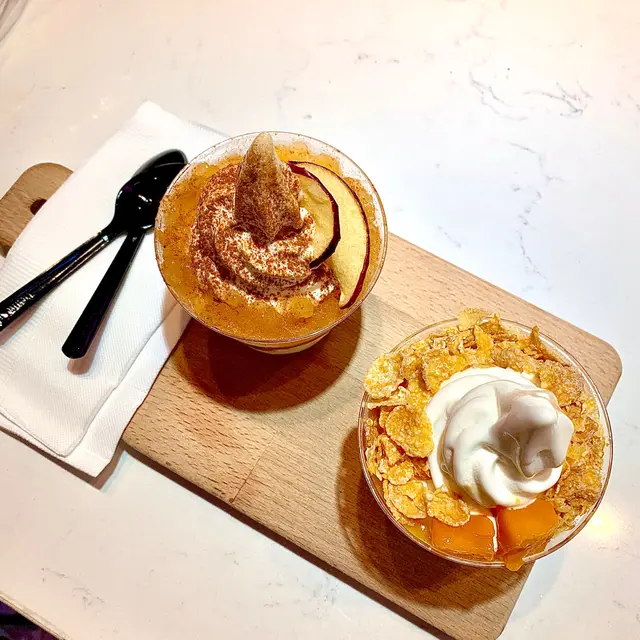 肉桂蘋果樹($52)本身中意芒果多d既我,竟然中意呢杯多d!!!! 雪糕中間仲有好多消化餅,側邊仲有超級多超級多蘋果肉,媽呀,真心好高質呀!雖然蘋果肉有少少甜,不過mix埋消化餅同雪糕,其實都稍稍中和左,唔算好膩,呢杯係冇諗到咁好味🙈🙈 好驚喜芒果脆穀杯($49)呢杯芒果醬都唔少,有夾雜左果肉,脆穀就係粟米片,食落都唔錯,個味道同預期差唔多,驚喜度冇上面果杯咁誇張,同樣地中間都係有消化餅,我幾中意呢個配搭,下次係屋企食雪糕都試下加消化餅同粟米片先查看更多