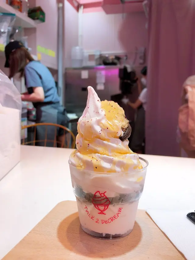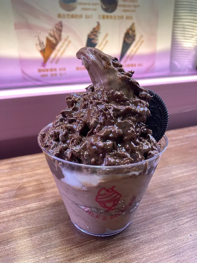位於尖沙咀厚福街既人氣雪糕店 - Talk 2 DeCream 門面以粉紅糖果色為主色,十分搶眼又夢幻。有多款口味既雪糕杯或筒裝選擇,全部口味都好吸引,好想試哂咁多款味道呀!!三重奏朱古力杯 $53朱古力軟雪糕味道好濃郁,有淡淡既黑朱古力苦味,唔會太甜。上面淋左75%朱古力榛子醬同粒粒脆米,入口脆卜卜,令雪糕味道更香更濃郁。加埋面層既Oreo餅同底層既Oreo餅碎,三重滋味一齊食口感更豐富。三重奏朱古力雪糕整體十分濃郁,層次豐富,食哂成杯都唔會感覺好膩,鐘意食朱古力既朋友一定唔可以錯過!查看更多