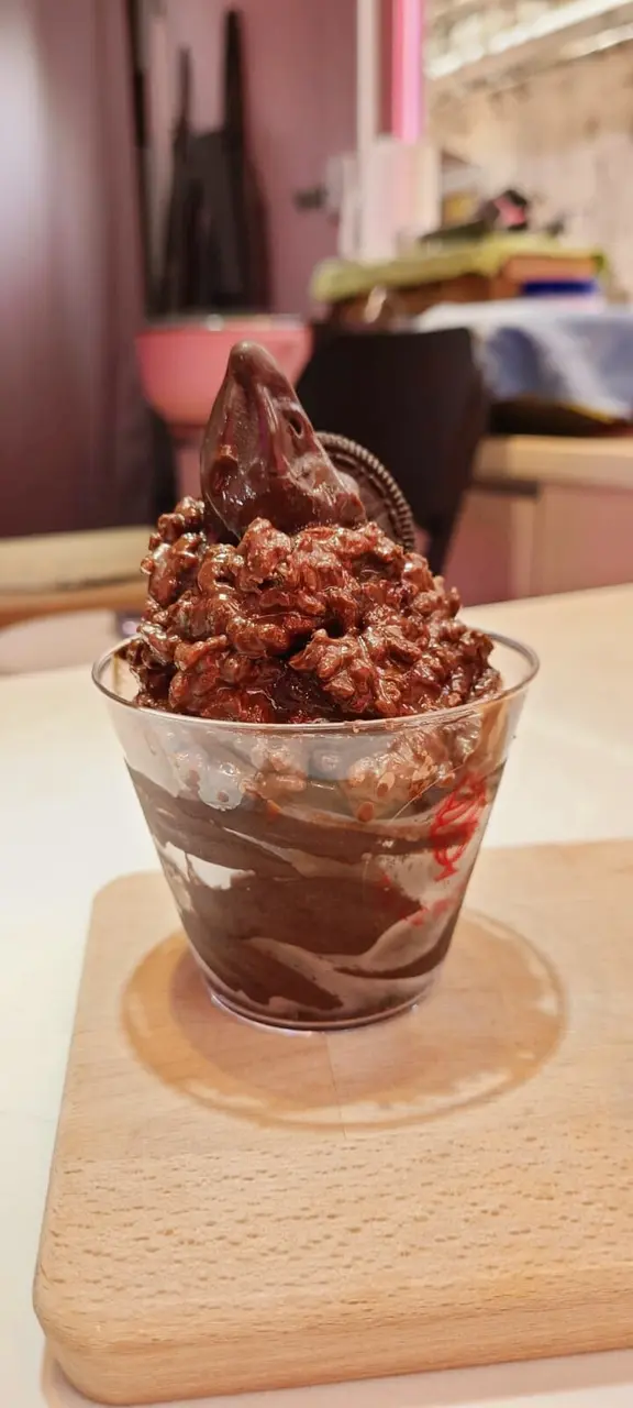 天氣熱,夜晚食完飯,行一陣就想搵d凍野食/飲,咁岩就比我地經過呢間少女味勁重粉紅色好靚既雪糕店💕-🍨三重奏朱古力杯 $53👍🏻口感豐富,超濃郁既朱古力雪糕同朱古力脆脆,仲有Oreo,超多朱古力,隨時唔只三重牙😋但奇怪地又唔會覺得好甜,感覺岩岩好🍫-值得一提,店員非常仔細咁整杯雪糕,務求比到最多既料你同整到靚一靚🥰•Life is like an ice cream, enjoy it before it melts•查看更多