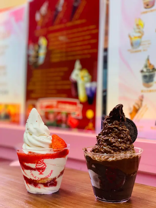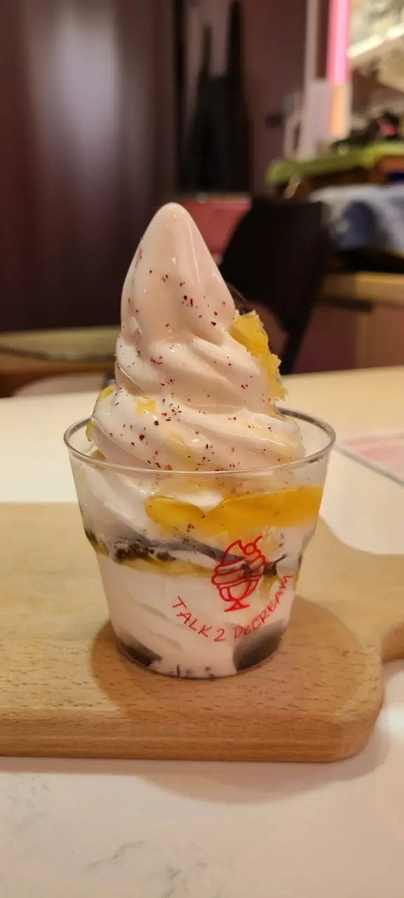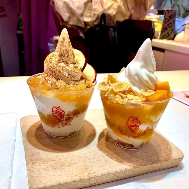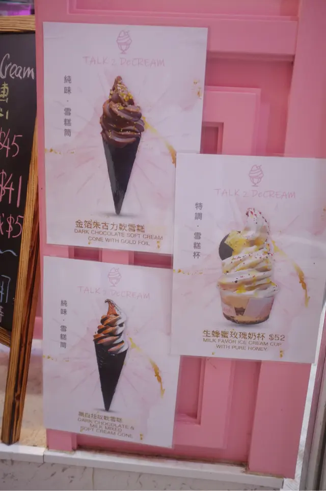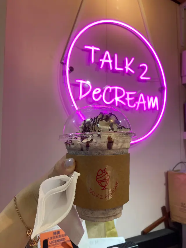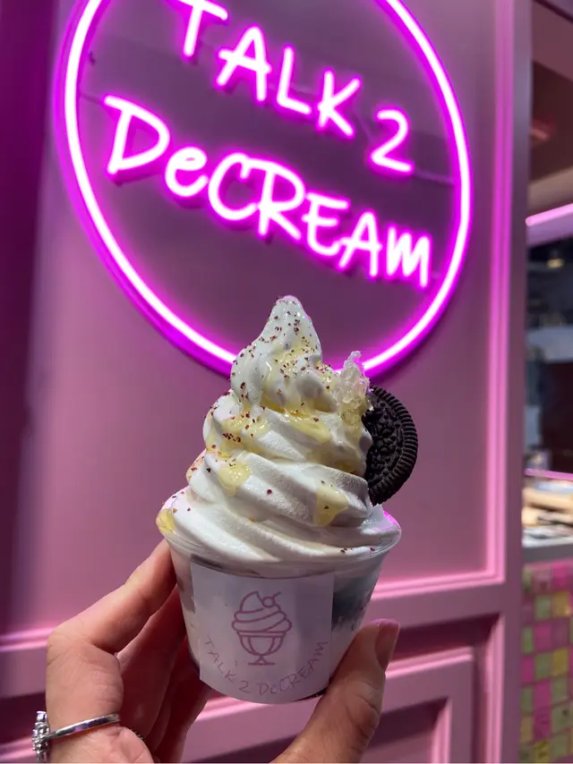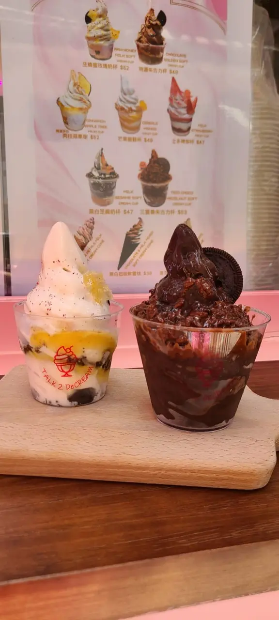 #merry豬覓食在尖沙咀 係疫情冇咁嚴重既時候,同牛奶仔去到厚福街搵食。厚福街出名多黃店,因為天氣實在太熱,所以我地食完飯黎食雪糕降一降溫。Talk 2 Decream以粉紅色為主題,啱曬少女心滿滿的merry豬來打卡----「感谢国家,感谢党,没有共产党没有雪糕吃🙇」除了充滿少女風以外,欣賞店家苦中作樂,小粉紅味道十分濃厚----生蜂蜜玫瑰奶杯 Raw Honey Milk Soft Cream $52首先點了一個生蜂蜜玫瑰奶杯。當然要嚐嚐最熱門的經典口味了。雪糕以vanilla味作為基調,再配上純天然蜂蜜漿,帶有玫瑰蜂蜜的清甜香味,混入左vanilla雪糕後味道不錯;中間和底部都加了OREO碎,為雪糕增添多一份口感同甜味----三重奏朱古力杯 Trio Choco Hazelnut Soft Cream $53最熱門的第二個口味是三重奏朱古力杯。朱古力雪糕採用意大利牌子製作,味道非常香濃,會比較甜膩,建議兩人分食會更好,朱古力雪糕加上朱古力脆脆及朱古力OREO餅乾,全部都是朱古力。值得一讚的是,可可米口感好脆。----Talk 2 DeCream地址:尖沙咀厚福街9號豪華閤地下A號舖查看更多
