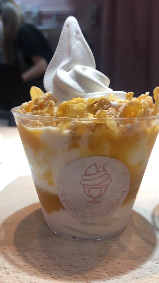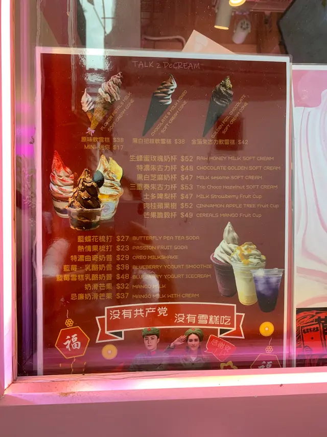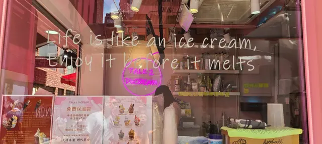 有一晚係尖沙嘴食飽飽好想食甜品,就來到美食街(厚福街)睇下有咩揀。轉角時就被Talk 2 DeCream嘅螢光粉紅設計吸引到味道選擇大概10種內,每一種味道都別具心思。當我正猶疑揀試邊一種味道時,店員非常熱情同友善地介紹每種口味嘅吸引之處,而且為迎合口味,更問我平常嘅對口味嘅喜好。最後揀咗生蜜蜂玫瑰奶杯($52)Milky rose soft serve with drizzled honey and a bit of honeycomb味道偏甜,可以減少少甜,整體算不錯但超級細杯,食幾啖就..無….晒 佢哋玻璃上嘅標語真係不能同意更多:“Life is like an ice cream, enjoy it before it melts” 除咗味道設計有心思,店舖設計都一流之前經過時見到嘅設計:同而家比一樣咁正”沒有共產黨, 沒有雪糕吃” 🎗查看更多