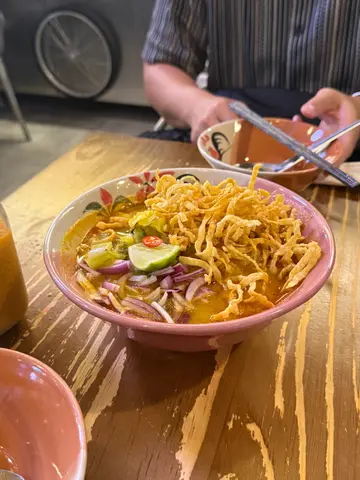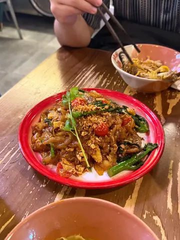几次路过都见到餐厅门外夸张嘅人龙,今次终于扚起心肝排队试下!大概八点门外仍有超过20位客人等待!餐厅气氛唔错,好热闹,店员勤快有礼貌,不过食物款式唔系好多。🍽️泰式青芒沙律 $68泰国青芒配上青瓜丝、洋葱等,加埋酸辣嘅酱汁好开胃惹味!好钟意佢嘅干虾仔,带有浓郁嘅咸香虾味。青芒果爽脆得嚟偏软身,酸味过后会有芒果嘅甜香飘出嚟,唔错,可以接受酸辣程度较浓郁嘅人可以一试。🍽️泰式虎虾金边粉 $88食泰国菜绝对唔少得嘅Pad Thai!虽然颜色偏淡但味道正宗,唔会太甜,辣味亦刚刚好。值得一赞系金边粉条条分明,干身得嚟仲带有弹性,烟烟韧韧真心唔错。🍽️泰式街头炸鱼 $138几乎枱枱都叫蚝饼,但怕太大份所以冇叫。结果叫咗份炸鱼试下,以为系鱼柳size谂唔到竟然系原条炸鱼!炸鱼颜色好靓,色泽均匀。鱼肉湿润滑溜,骨比较粗身大条唔多骨刺仔。外皮焦香加上炸蒜味道大大加分,点埋酱汁酸酸辣辣更浓泰式风味。🍹芒果沙冰 $32芒果沙冰打得好匀循,冇碎冰粒,入口软滑感觉似奶昔质地。芒果香气十足,甜味中带微微酸味饮到停唔到口!成杯沙冰唔会过甜~「泰」满足,价钱喺旺角嚟讲亦唔算贵,下次可以挑战埋炸蚝饼同火山排骨!…查看更多