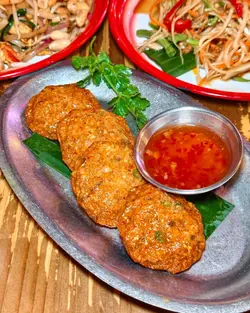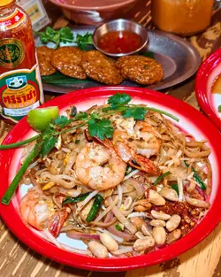 🐘🇹🇭【 Tamarind 】 🇹🇭🐘⋄ —————⧫♟⧫————— ⋄想食正宗泰国菜,揾到呢间够地道、有镬气泰式大排档,真系一瞬间有置身泰国嘅错觉🇹🇭 晚市时间人声鼎沸,环境热闹有气氛🔥泰式虎虾金边粉( $88 )金边粉质感烟烟韧韧,炒得好够镬气😍 大虾有三只,另有辣椒粉、花生等配料,自己挤青柠汁,枱面另有辣椒酱,可以自己加,yum❣️咸蛋青木瓜沙律( $68 )青木瓜非常清爽,配合浓郁嘅咸蛋、番茄,以鱼露、柠檬汁等调味,甜、酸、咸、辣,五味杂陈,劲有泰式风味🧡泰式鱼饼( $48 )油炸至金黄酥脆,口感弹牙,香气十足嘅小食😍泰式奶茶( $26 )芒果沙冰( $32 )饮品比较甜,但够冰冻,都不错🧊☺️⋄ ┄ ┄ ┄ ┄ ❖ ┄ ┄ ┄ ┄ ⋄泰式虎虾金边粉( $88 )咸蛋青木瓜沙律( $68 )泰式鱼饼( $48 )泰式奶茶( $26 )芒果沙冰( $32 )⋄ ┄ ┄ ┄ ┄ ❖ ┄ ┄ ┄ ┄ ⋄⋄📍地址:Tamarind (旺角)旺角通菜街1号威达商业大厦地下K&L号舖⋄🔥更多同区美食👉🏻 #ccrreami旺角⋄⋄⋄#hkig #hkfoodie #hongkongfood #hkfood #hongkongfoodie #foodblogger #hkfoodbloggers #hkfoodies #相机食先 #openrice #香港美食 #hkinfluencer #foodiehk #香港 #香港生活 #香港旅游 #香港探店 #香港美食 #香港打卡 #香港必吃 #旺角美食 #tamarind #tamarindhk…查看更多