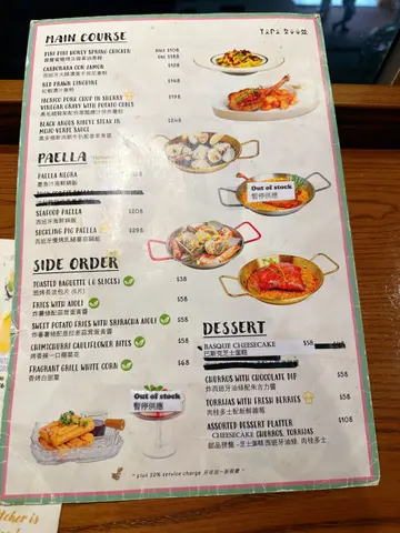 门口灯饰超级靓,好适合打卡📸,里面既灯饰都几过瘾,我和朋友坐咗系近窗边既Bar台,望住楼下风景都几Chill🤟🏻。✨西班牙慢烤乳猪番茄锅饭($298)慢烤乳猪外皮薄又脆🐽,肉嫩充满油香味,番茄锅饭,饭香亁身有番茄汁味而且不酸。✨薄切慢煮八爪鱼($88)慢煮八爪鱼很新鲜口感超软,中间橙色的酱汁酸酸的很开胃,作为前菜很棒😋。✨冻切拼盘($88)拼盘有西班牙火腿、曼彻格芝士、红酒烩梨,西班牙火腿咸而薄很有风味,曼彻格芝士味道很浓很适合配酒,最后来一口红酒烩梨中和咸味。✨鹅肝比坚尼三文治($78)比坚尼三文治烤得很香脆,配上鹅肝做馅超级棒,咬下去会一口接著一口,停不了。✨巴塞隆拿式烤红虾($98)是我吃过最好吃的虾子🤩,巴塞隆拿式的做法太好吃了,味道很油香虾肉很Q弹,彻底爱上这道菜!✨Red Sangria($48)苹果味道作为基底的酒🍎,还放了一点苹果肉在里面,喝著很顺口不太酸。✨White Sangria($48)橙子味道作为基底的酒🍊,喝著很顺口开胃。…查看更多