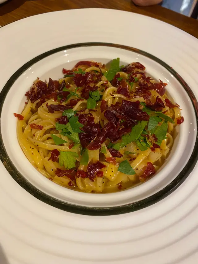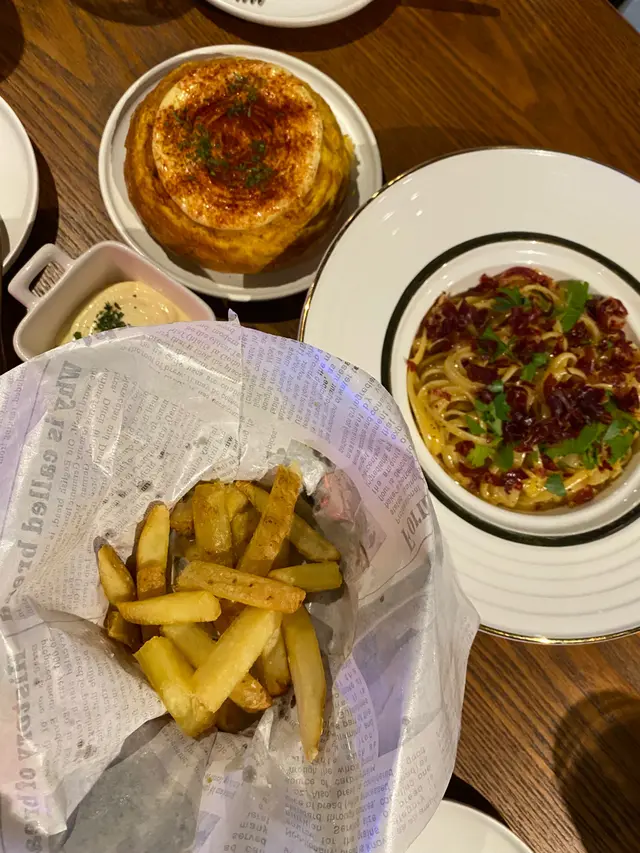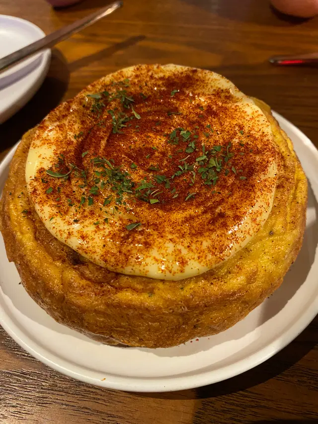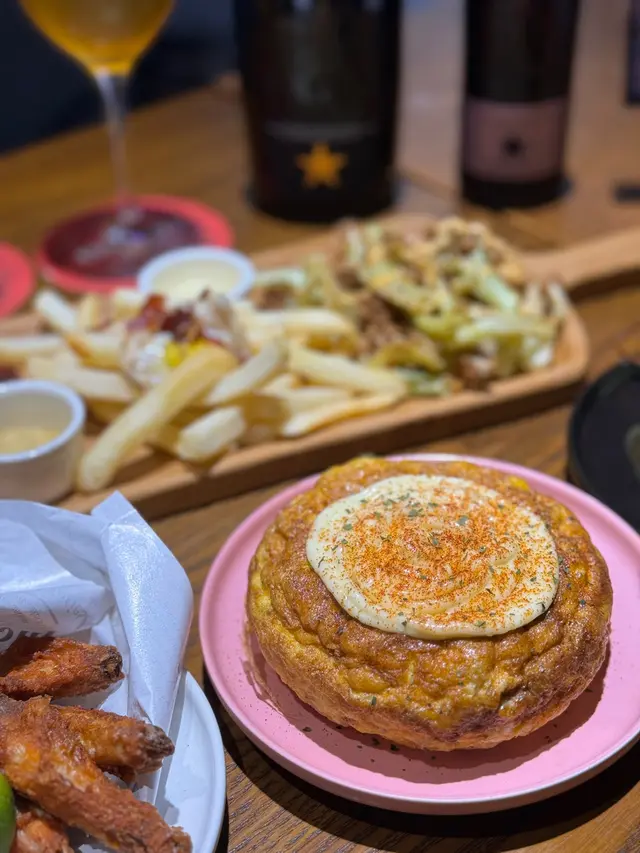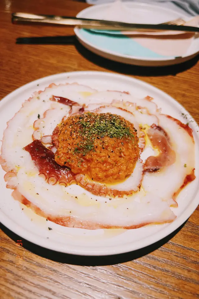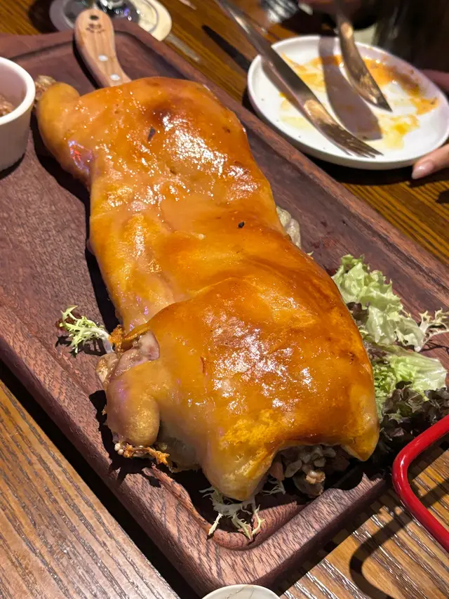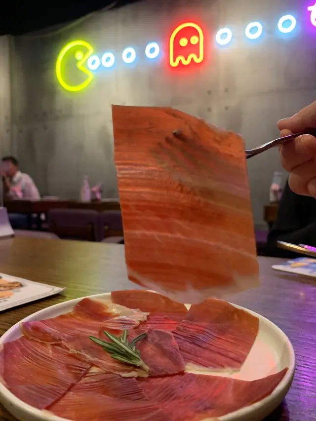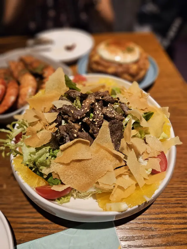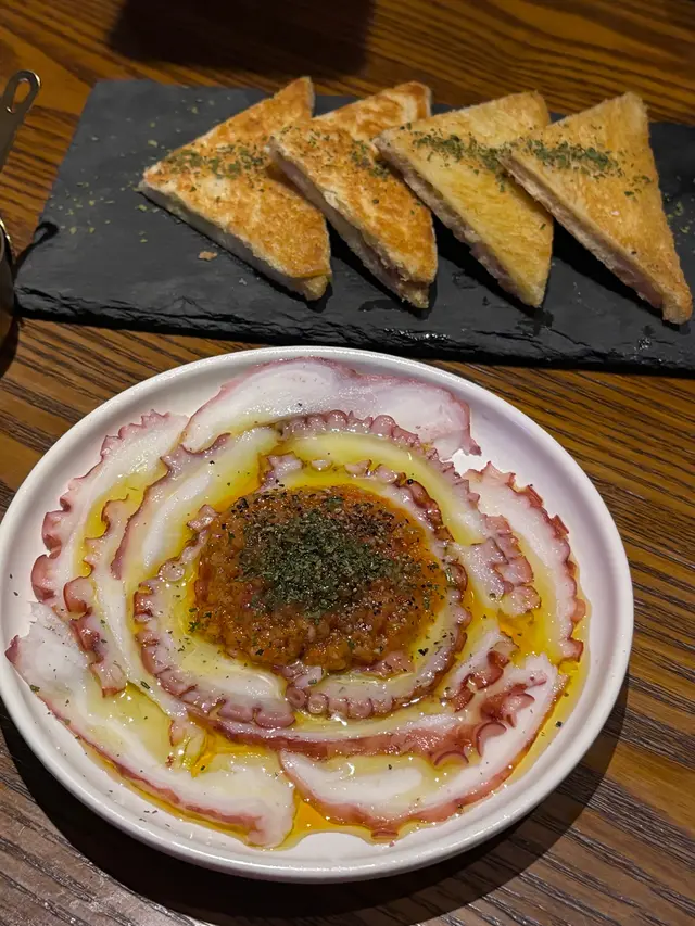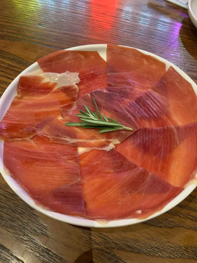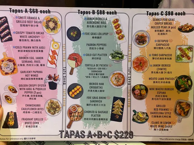 I brought my other half for lunch at Tapa Room, and it was our first time dining there. The environment is nice with wines and beers displayed on shelves, wooden tables and stuff, creating a pleasant atmosphere. We arrived around 3-4 pm so there were very few other customers, which I enjoyed.The staff was nice, pouring us water and offering to pack up our leftover food since we couldn't finish everything, showing a friendly attitude with good greetings and farewells.SEARED FOIE GRAS CRISPY BREAD, MULLED PEAR (4 pcs) $98We started with the seared foie gras crispy bread and mulled pear. They were tasty, although very salty.TORTILLA DE PATATA (COD ROE) $88Next, we tried the tortilla de patata with cod roe favor. It was delicious with a great texture, and we had no complaints, perfect!ROASTED SUCKLING PIG (HALF) $398Lastly, we ordered the roasted suckling pig (half), which was a hearty portion, meaty and juicy. Unfortunately, we were already quite full and couldn't finish the entire dish, but it was still good. We underestimated how large the roasted pig would be. I think one suckling pig (half) and another small dish would be enough for two people.ConclusionI enjoyed the place, the service, and the food. However, for those who worry about the price, I must mention that the prices were quite expensive, with our total coming to $689. Nevertheless, I would love to visit again someday, if I have something to celebrate.…查看更多