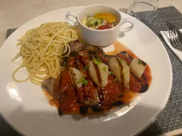 之前见网上有人介绍过, 所以要来试下 食物 : 香煎大龙脷柳意粉+冻柠茶 $101 ~ 餐汤是自家制忌廉粟米汤~好味, 沙律新鲜好食, 鱼柳煎很香脆, 意粉不是白烚, 有炒过好好味 红酒烩牛脸肉意粉+冻柠茶 $104 ~ 牛肉煮得好淋好入味, 值得推介 环境 : 布置简简单单, 座位舒服干净 地点 : 餐厅在骆驼漆大厦, 由MTR行过来约5分钟 服务 : 职员有礼貌主动 价钱 : HK$205/2人 (无加一服务费)